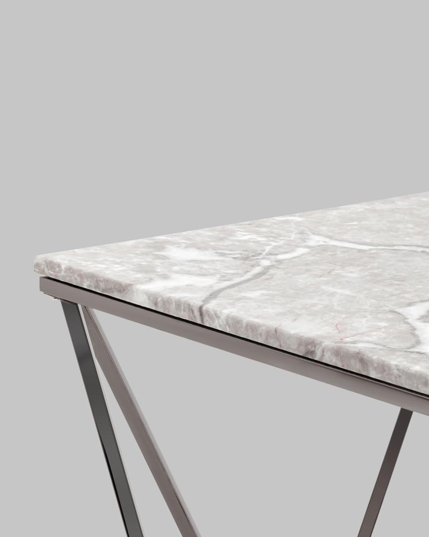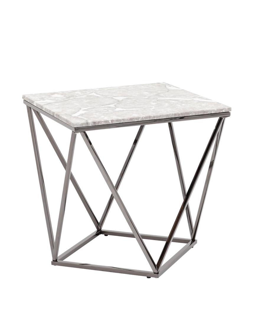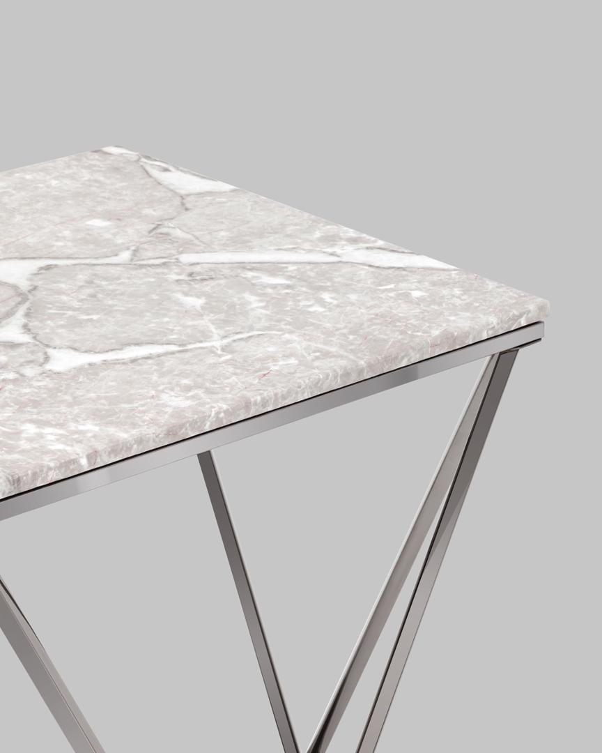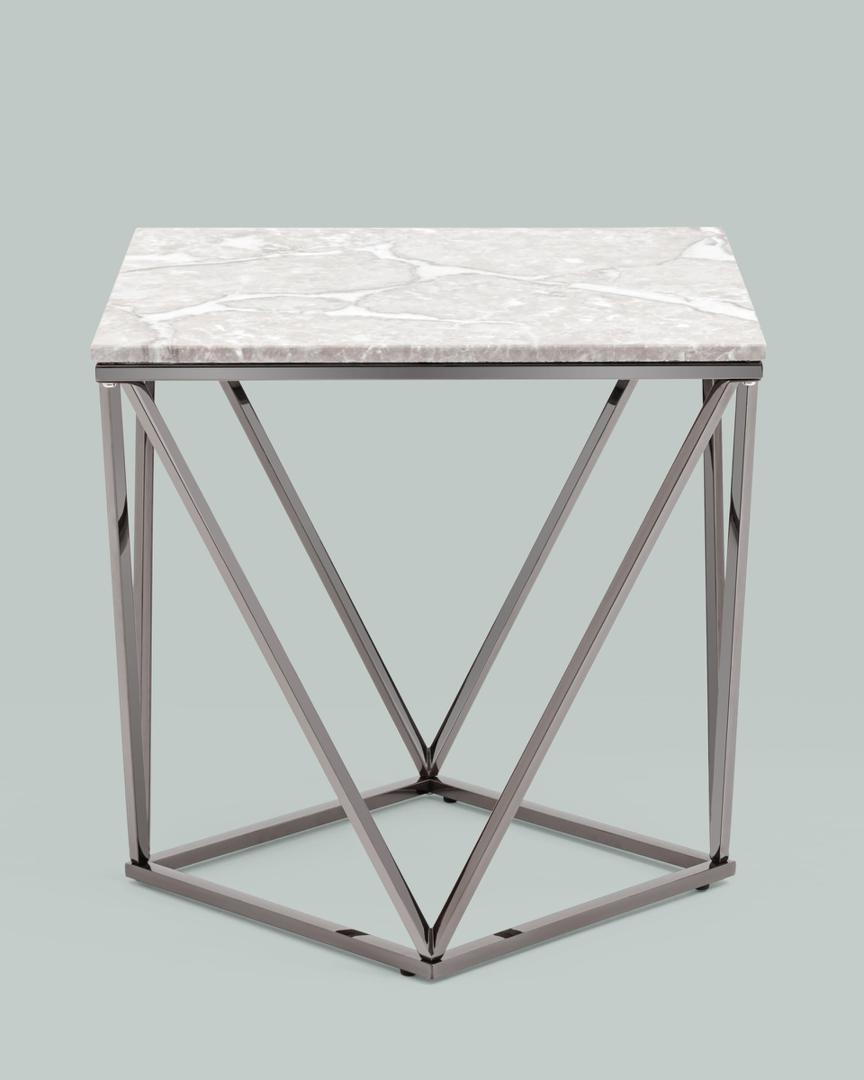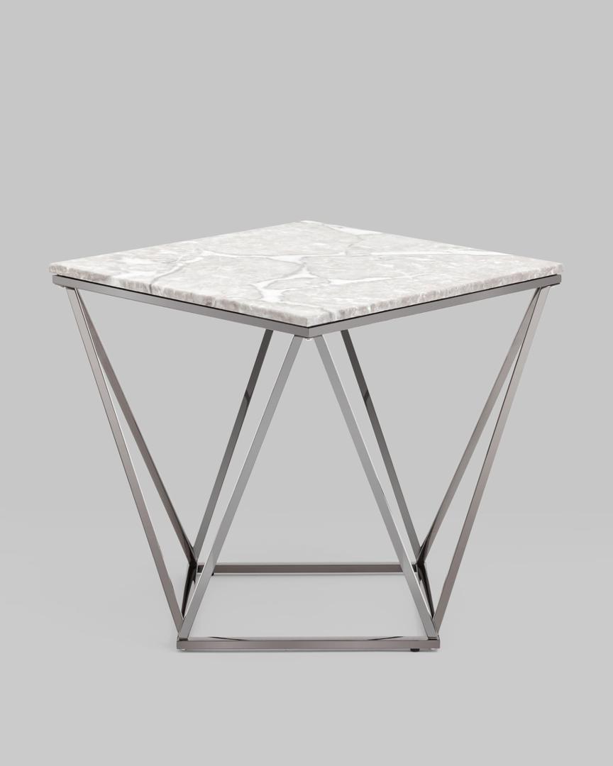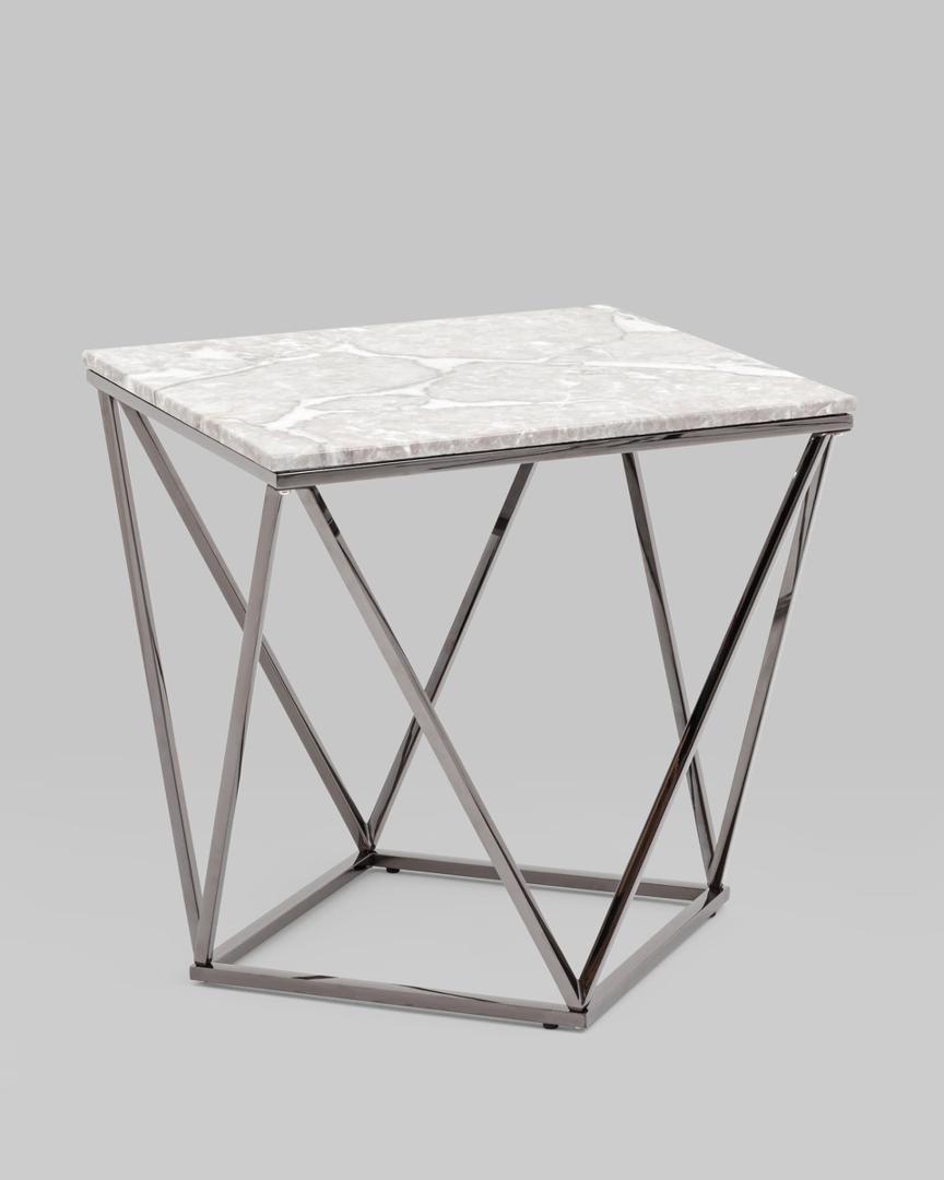Журнальный столик Авалон 61*61 серый мрамор каркас нержавеющая сталь темный хром