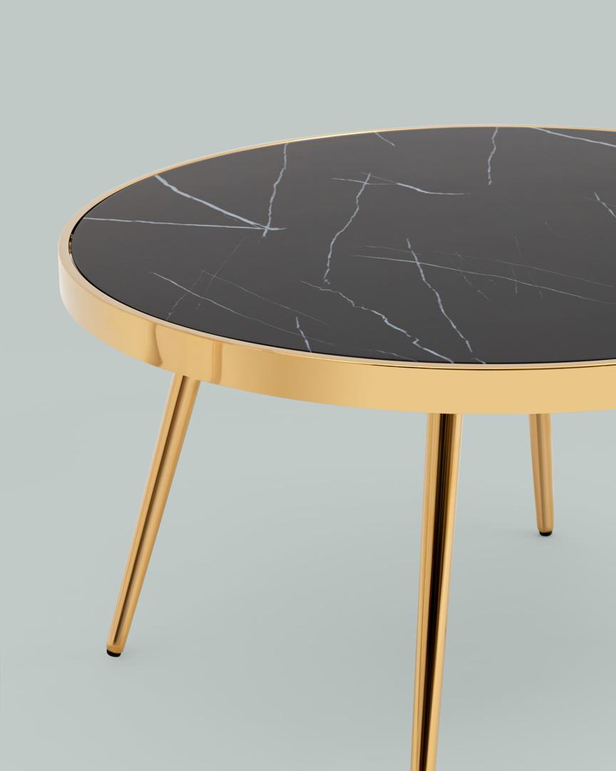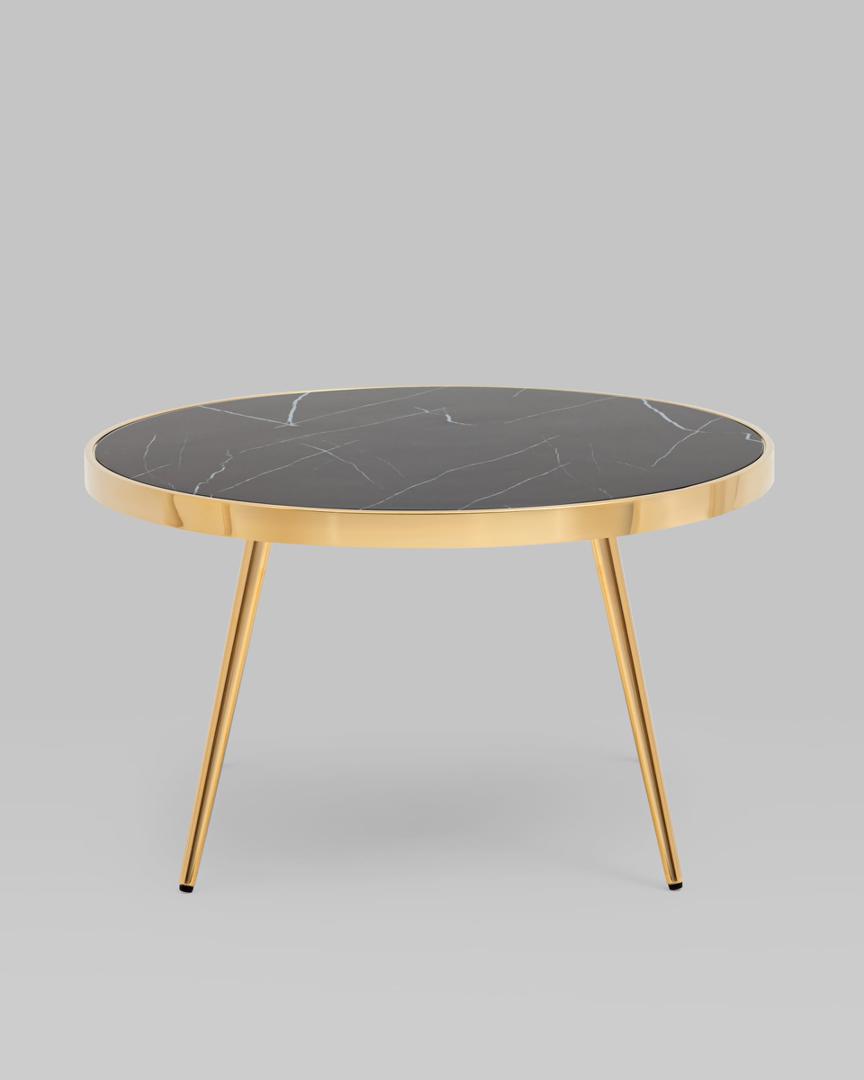 Журнальный столик Гелиос 80х80, стекло черный мрамор, ножки сталь золото
