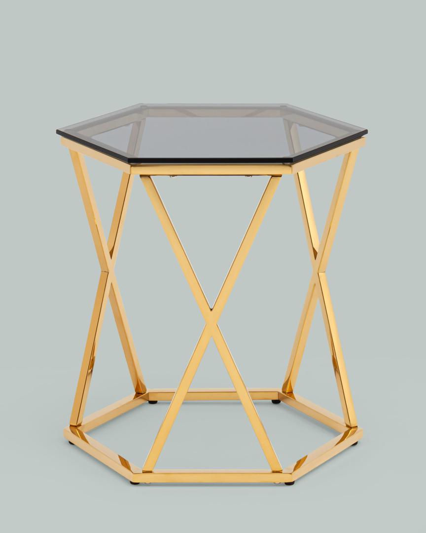Журнальный столик Круз 48*42 стекло smoke каркас закаленная сталь золото