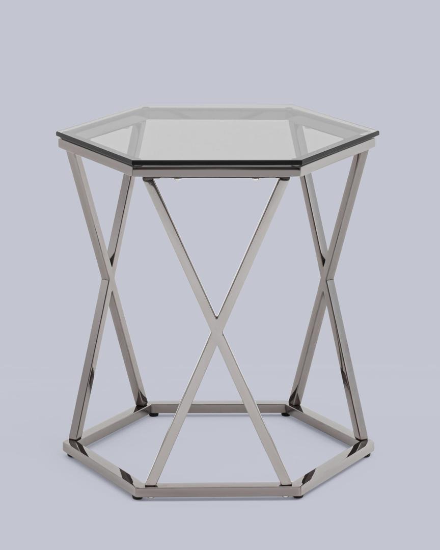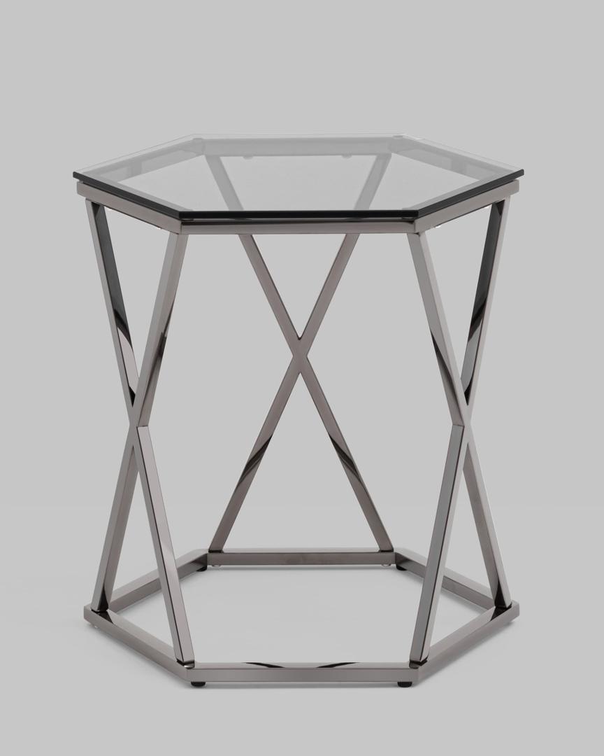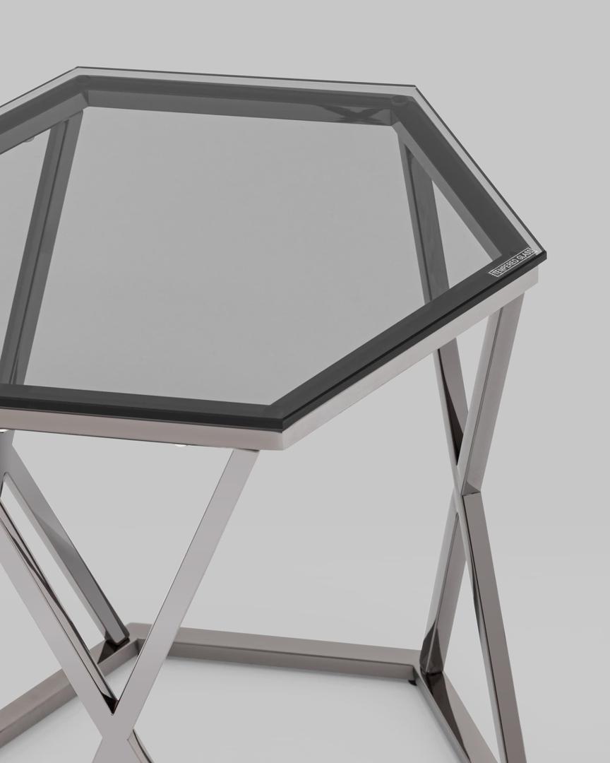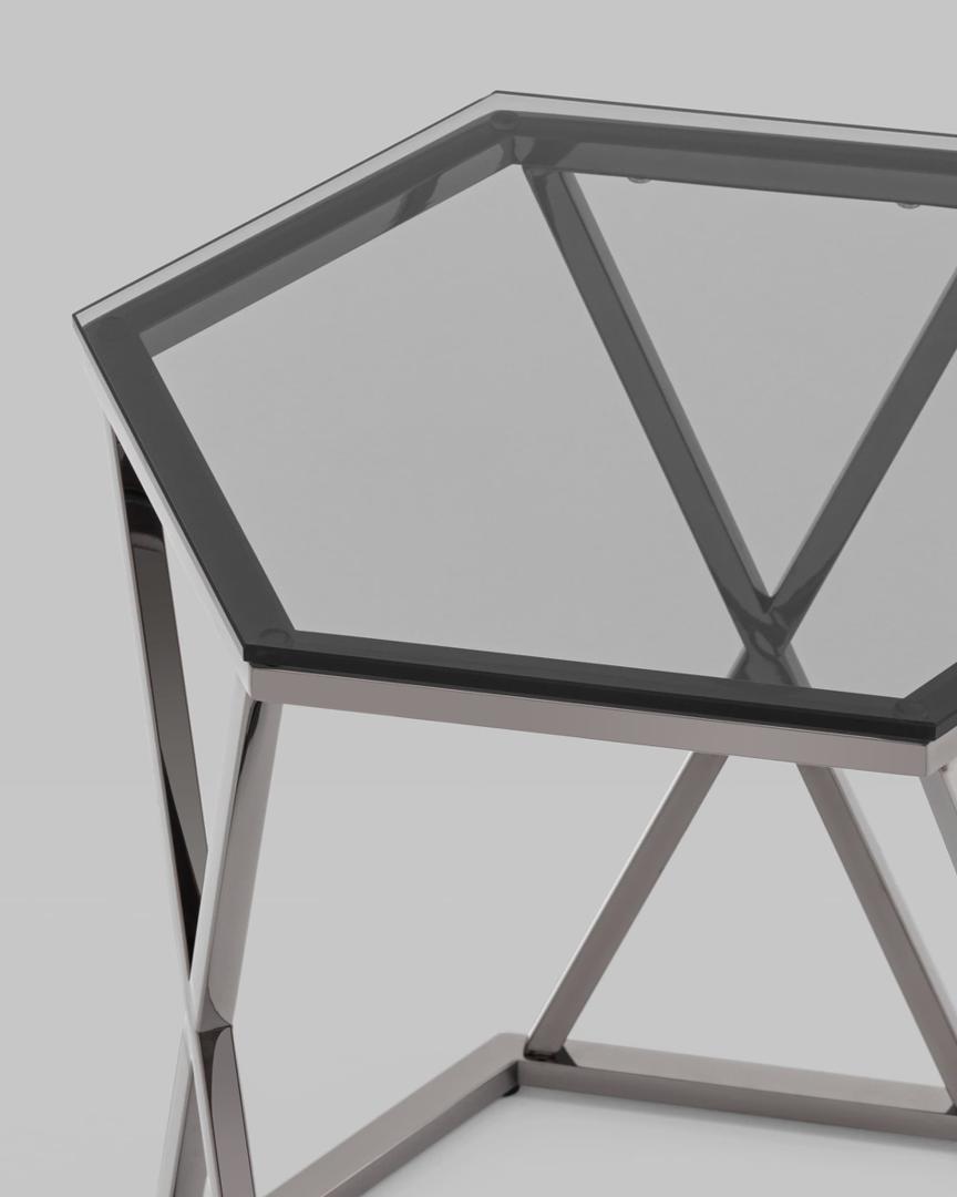 Журнальный столик Круз 48*42 стекло smoke каркас нержавеющая сталь темный хром