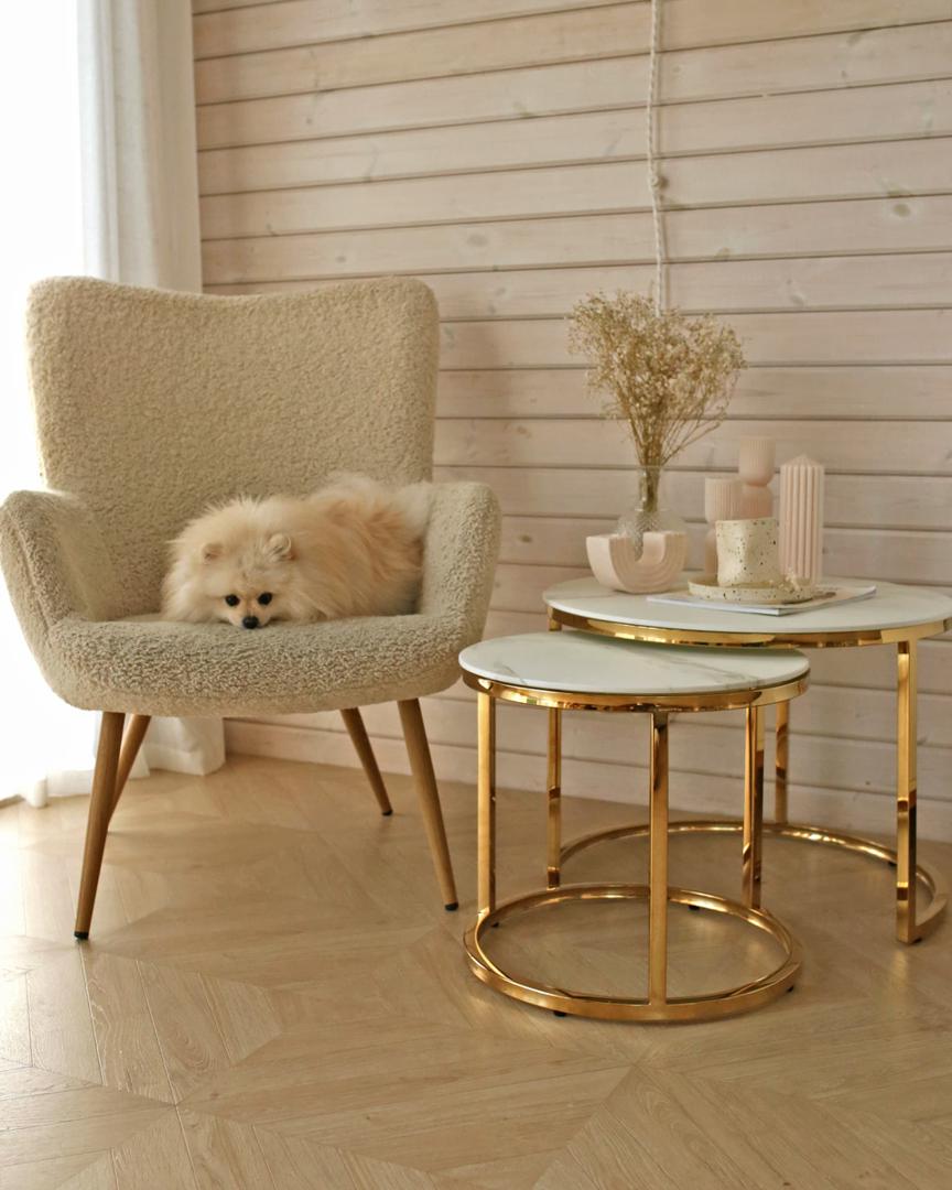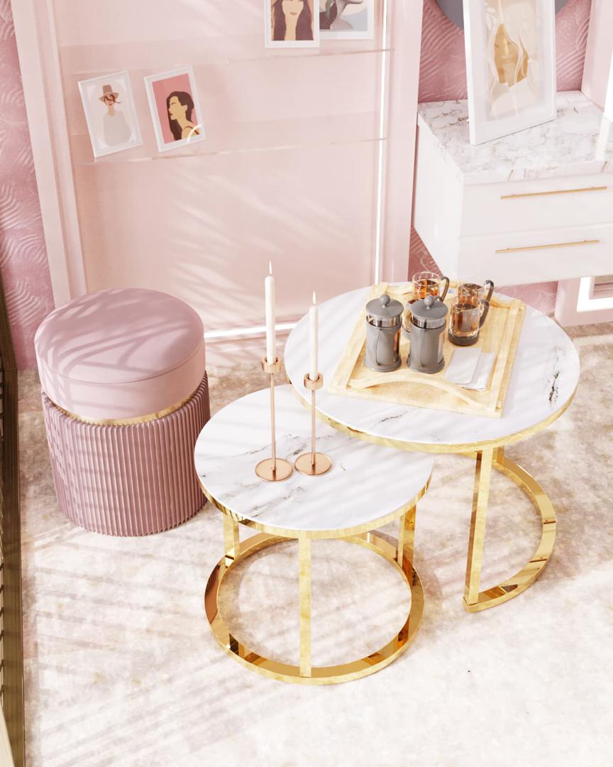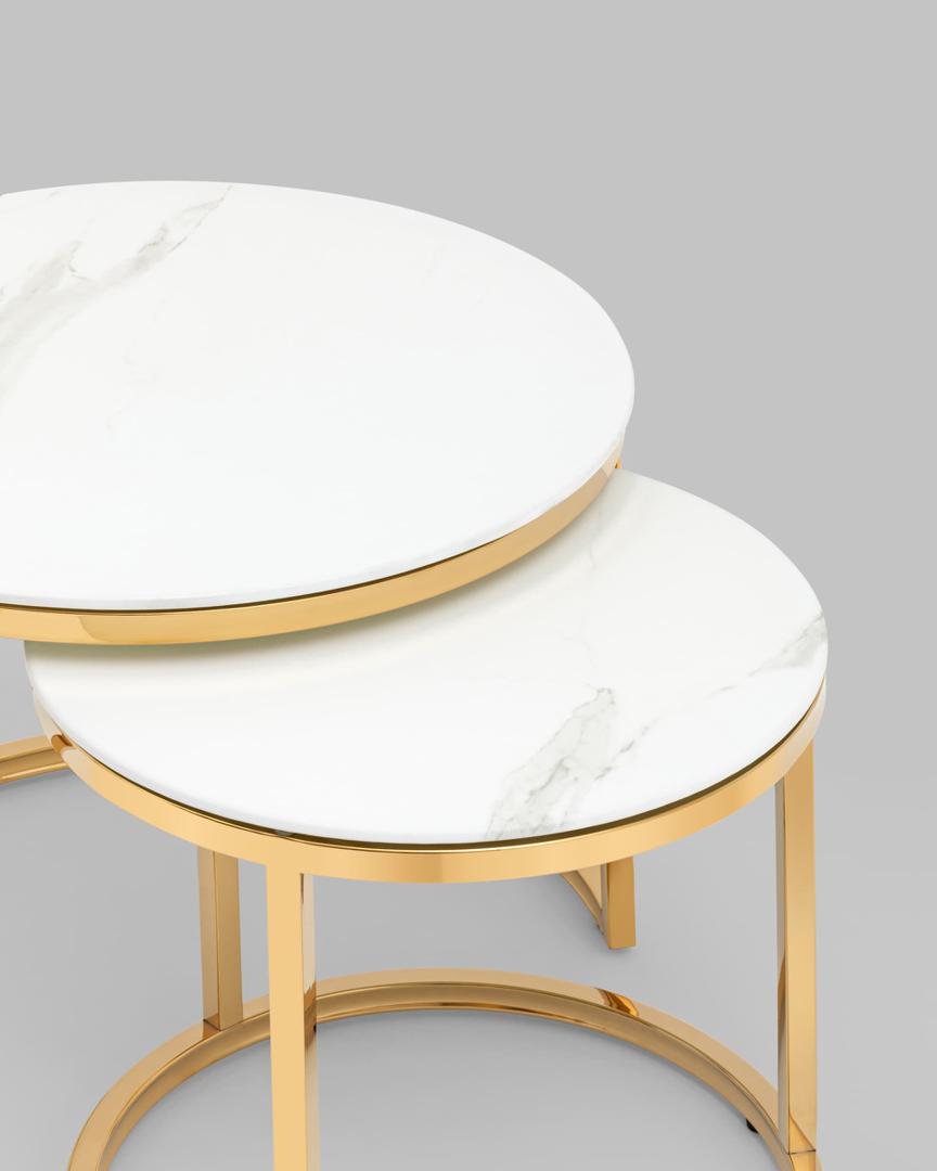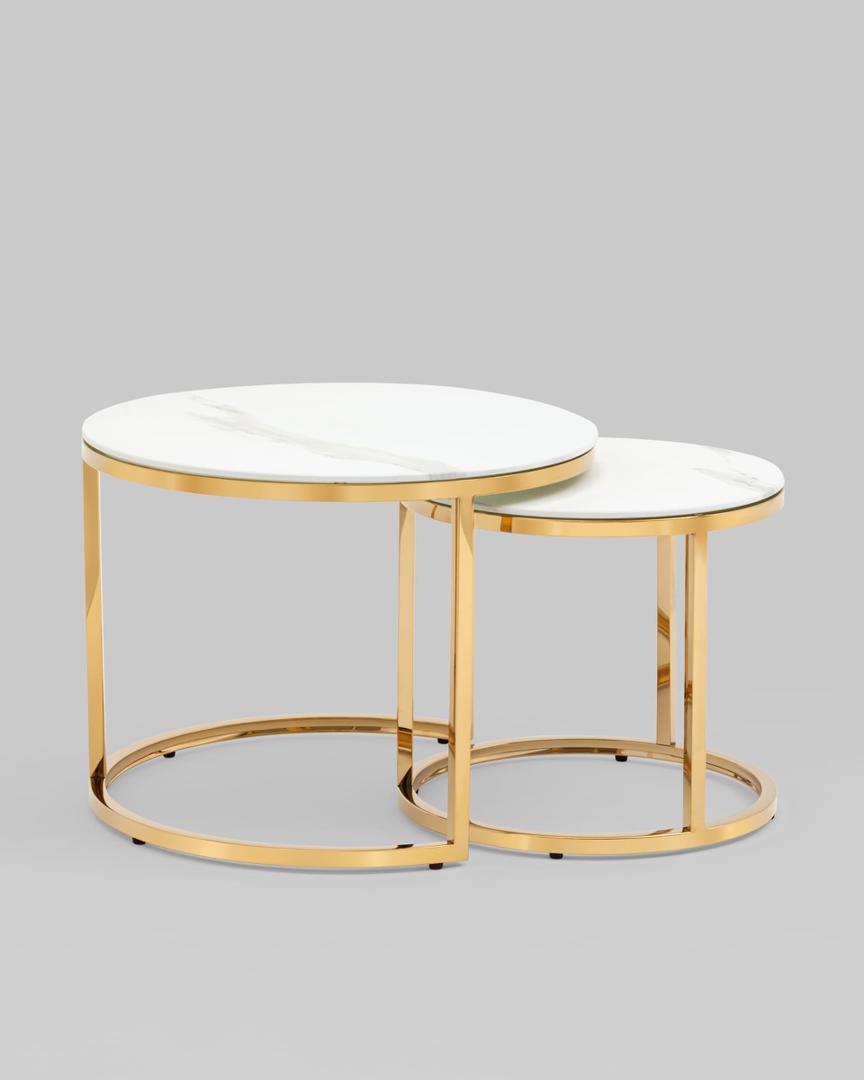 Набор журнальных столиков Селена 60 и 45 см стекло белый мрамор каркас нержавеющая сталь золото