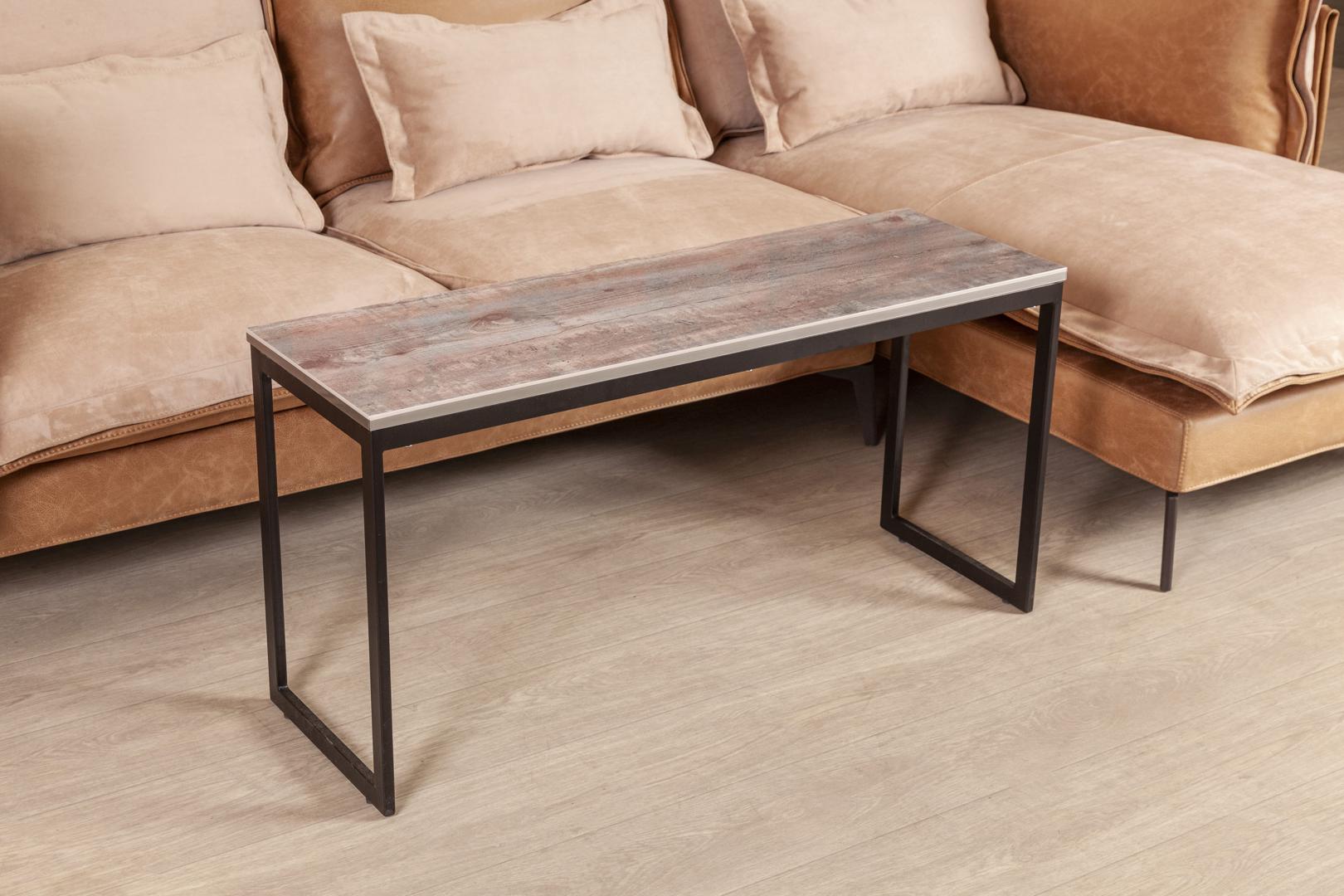 Габариты интерьерного стола Лофт 5 - 107.5х35.5х54.5 см Интерьерные столы, станут ярким акцентом Вашего интерьера и смогут не только украсить его, но и стать функциональным модулем в Вашей гостиной, спальне или прихожей. Интерьерные столы выполнены в современном стиле и легко впишутся в стилистику любого помещения. Напольное покрытие защищено от царапин резиновыми накладками. На выбор представлены варианты столешниц - древесная плита в 4 цветах. Кромка в тон изделия во всех декорах, кроме "Бетон Пайн" (с данным декором используется кромка стального цвета). h3Варианты столешницы: /h3 - высокий глянец - Бетон Пайн / Макассар / Эбони Индийский темный - матовое покрытие - Капучино матовый Основание: металлический стальной профиль Варианты исполнения основания: черный муар Древесная плита высокий глянец Alternative предназначена для производства элементов мебели. Плиты производятся по технологии УФ-лак и обладают следующими преимуществами: ul liпревосходные глубокие цвета/li liобъемность и зеркальность, подчеркивающая статус и благородство фактуры/li liстойкость к бытовым царапинам/li liвысокая ударопрочность (в 25 раз выше, чем у качественного стекла)/li liэкологичность, гигиеничность, простота в обслуживании/li /ul hr/ p style="color:#7A12B3"Информацию о наличии доступных цветов столешницы уточняйте у наших менеджеров.