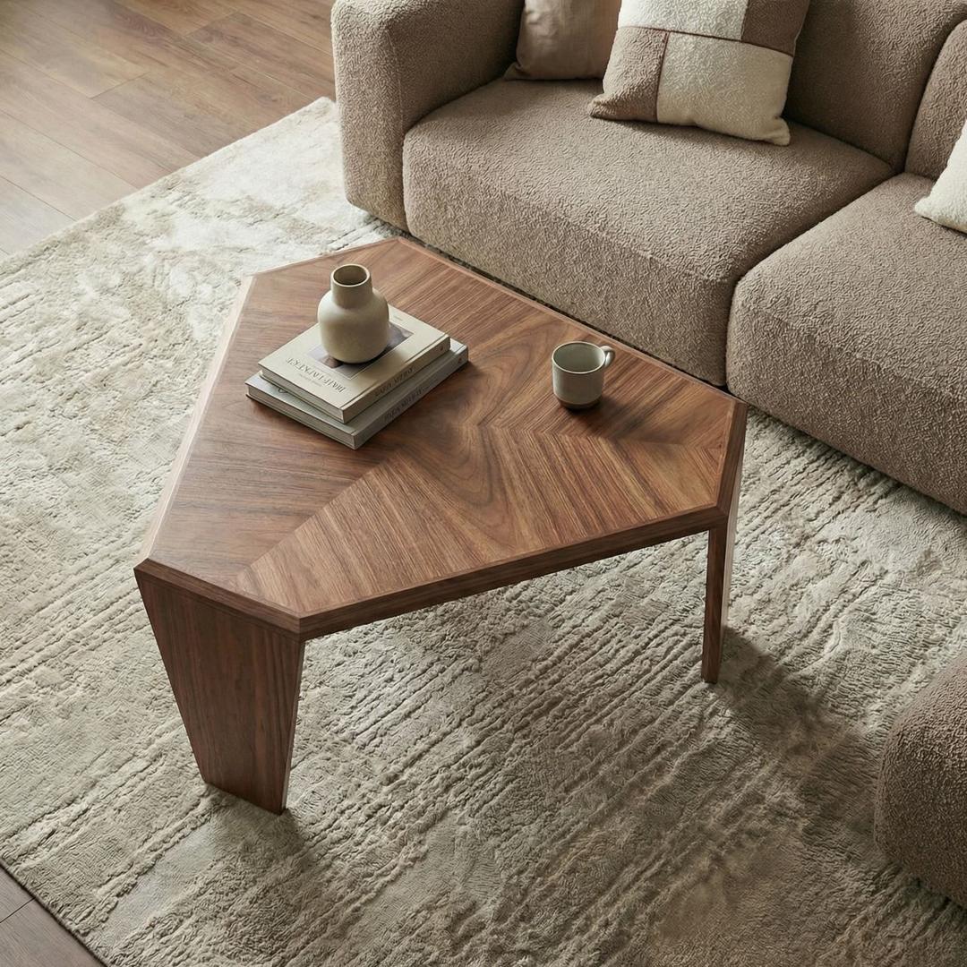 Треугольник — самая динамичная фигура в дизайне. В журнальном столике Nidji его энергия смягчена усеченными углами, превращающими строгую форму в элегантный гексагон (шестиугольник). Это акцент, который невозможно не заметить. Благодаря идеальным пропорциям и живой текстуре дерева, этот стол будет естественным центром притяжения для зон отдыха, шоурумах или просторных гостиных. h3Столешница/h3 Столешница из МДФ, покрыта натуральным шпоном ореха. Благородный рисунок древесины подчеркивает геометрию стола, создавая игру природных линий. Оттенок — тёплый орех с характерными переливами от медово-коричневого до глубокого шоколадного*. *Важно учитывать: В зависимости от освещения в помещении и настроек вашего монитора цветопередача может отличаться. При дневном свете текстура выглядит более контрастной, при тёплом вечернем освещении — становится глубже и насыщеннее. h3Опора и каркас/h3 Архитектурная чистота линии достигнута за счет цветового единства: ножки в тон столешнице делают конструкцию визуально цельной. Основание из стали с матовым порошковым покрытием создает надежный «фундамент». Специальные регулируемые опоры на ножках позволяют установить столик идеально ровно на любом покрытии, будь то плитка, паркет или ковролин. h3Гарантия/h3 Стол поставляется в разобранном виде. На все соединения и материалы распространяется гарантия 12 месяцев.