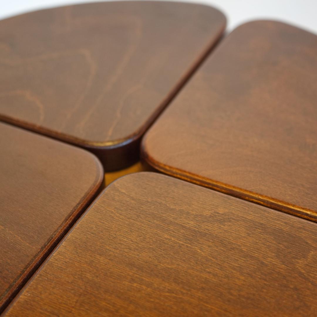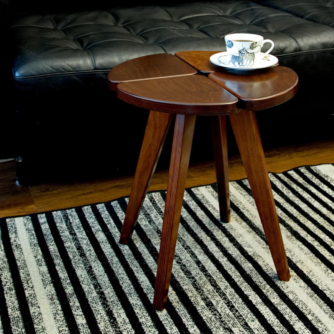 Журнальный столик Коффэ, прекрасный аксессуар для гостинной или спальни. Форм-фактор стола специально подобран под современные квартиры- его можно использовать и как столик и как прикроватную тумбочку.Выполнен из высококачественной берёзовой фанеры, покрыт морилкой и качественным лаком. Прочный и лёгкий.Подойдёт к любому интерьеру за счёт бионических форм и натуральности исходных материалов - в основе этого стола лежит берёзовый шпон.Цветовая гамма - от чёрного дерева, до ореха и светлого натурального оттенка.Размер стола 40*40*45, вес - 4 кг