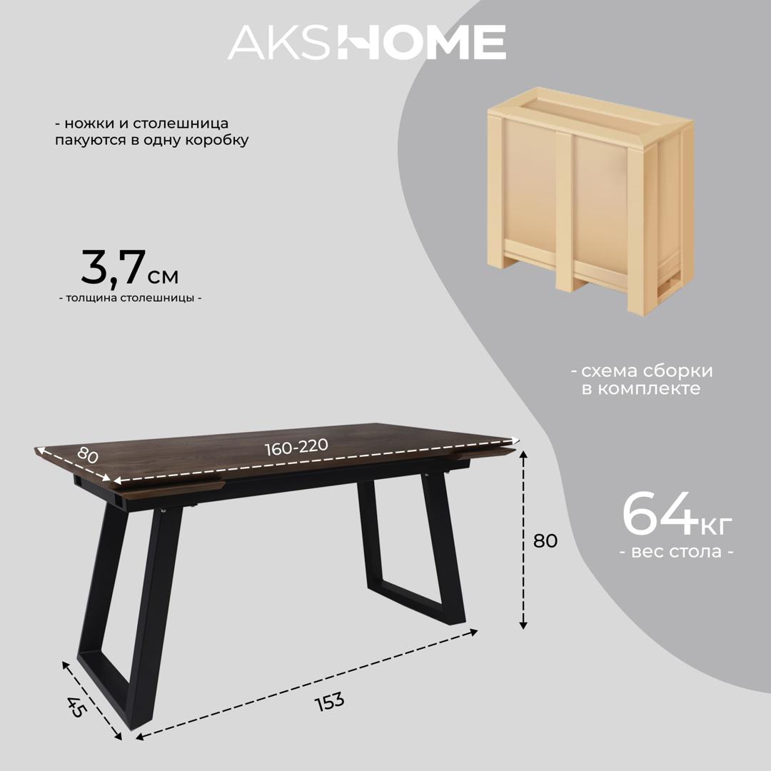Стол AksHome Стол раздвижной Сангай, 160(220)*80, дуб галифакс табак, массив арт. ZN-126358
