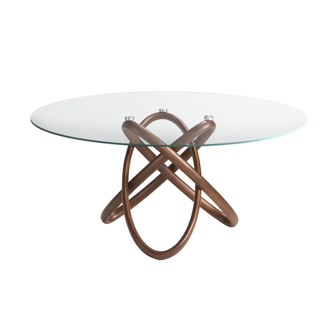 Стол обеденный DT16069 от испанских дизайнеров фабрики Angel Cerda — стиль и красота для современной гостиной. Стол буквально завораживает с первой секунды. Созданная из натурального дерева необычная стойка, напоминает детскую головоломку. Пытаясь мысленно распутать кольца, влюбляешься в эту модель все больше. Стол непременно хочется поставить в своем доме, чтобы на нем концентрировать внимание не только свое, но и каждого гостя. Данная модель создана в современном стиле, но имеет очень необычный дизайн. Стойка представляет собой три кольца из натурального дерева (два овальных и одно круглое), которые, проходя сквозь друг друга, поддерживают столешницу в трех точках. Столешница изготовлена из закаленного стекла, стойкого к ударам и воздействию высоких температур. Она круглая и, в зависимости от выбранной модели, имеет диаметр 130, 140 или 150 см. Высота стола составляет 75 см. Эта модель особенно подойдет для семей, где есть маленькие дети, так как в ней нет ни одного острого угла, а материалы изготовления не вызовут аллергию. Стол поставляется в разобранном виде (столешница отдельно). Инструкция по сборке и крепеж входят в комплектацию.