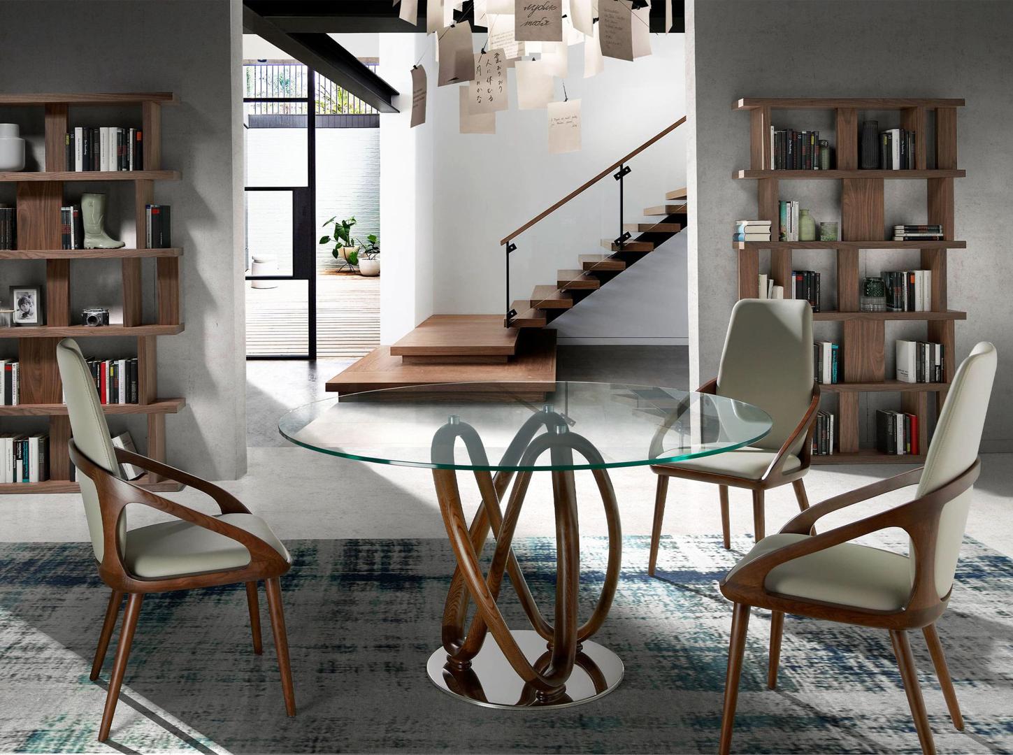 Круглый обеденный стол DT801 — уникальное творение дизайнеров фабрики Angel Cerda. Стол удивляет и восхищает одновременно. Слепленная словно из пластилина деревянная стойка бесспорно делает эту модель эксклюзивной. Ножку хочется потрогать, чтобы убедиться в ее твердости и осознать в итоге, что это изделие создавал действительно мастер своего дела. Да, такой стол — настоящая находка для современной гостиной, которой не хватает чего-то особенного. При изготовлении данной данной модели использовалось сразу три материала: сталь, стекло и дерево. Столешница сделана из закаленного ударопрочного стекла и имеет круглую форму. Отсутствие острых углов делает эксплуатацию изделия более безопасным, что важно для семей с маленькими детьми. Поддерживает столешницу стойка, сделанная из цельной гнутой древесины. Ей оставлен натуральный, светло-коричневый цвет. Для придания всей конструкции устойчивости, есть металлическая подложка, на которой закреплена дизайнерская ножка. Она имеет цвет темной хромированной стали и достаточную площадь, чтобы обеспечить нужную устойчивость. Диаметр стола составляет 130 см, а высота — 78 см. Данная модель приходит в разобранном виде, поэтому потребуется самостоятельная сборка. Крепеж и инструкция входят в комплектацию. Вес стола после соединения всех элементов составит 51 кг.