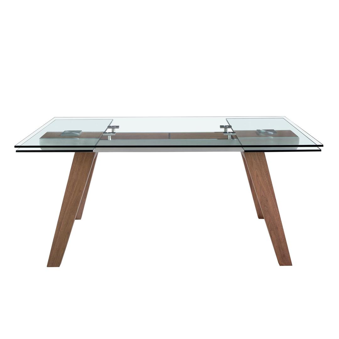 Раздвижной обеденный стол 1131/DT766 от фабрики Angel Cerda – функциональная конструкция в современном дизайне. Раздвижной обеденный стол 1131/DT766 идеально совместим с современным городским дизайном. Его прозрачная столешница в тандеме с деревянными ножками выглядит оригинально и смело. Такой необычный вид сделает вашу столовую индивидуальной. А раздвижная конструкция поможет разместить большую компанию гостей рядом без чувства тесноты. Стол прямоугольной формы, имеет сборную конструкцию. Столешница изготовлена из прозрачного ударопрочного стекла толщиной в 1,5 см. Боковые грани столешницы сглажены. Ножки сделаны из дерева и покрыты сверху шпоном орехового дерева. Они расставлены под углом для улучшения распределения нагрузки. А для защиты напольного покрытия от повреждений предусмотрены специальные накладки. Чтобы увеличить площадь столешницы, необходимо из-под центрального стекла с одной или обеих сторон (по необходимости) выдвинуть дополнительные секции. Они плотно удерживаются на опоре снизу, обеспечивая равномерное распределение нагрузки. Размеры стола: ширина – 180/225/270 см, глубина – 100 см, высота – 76 см. Вес изделия – 134 кг. Потребуется самостоятельная сборка. Инструкция и крепеж включены в комплектацию. Стол предназначен только для эксплуатации в помещении.