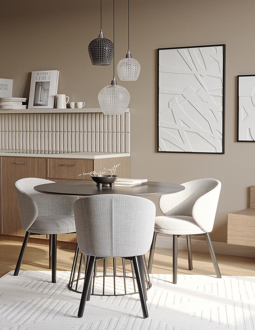 Обеденный стол Tyra – яркий пример удачного сочетания стильного дизайна и практичности. В пространствах в стиле лофт, сканди и минимализм этот предмет мебели поможет сделать акцент на простой и функциональной обстановке, а классическому интерьеру придаст новое звучание. Особенности и преимущества: - Столешница из прочной и устойчивой к износу МДФ не требует сложного ухода и долго сохраняет привлекательный вид. - Конусовидное основание из высокопрочной хромированной стали делает дизайн интересным, обеспечивает конструкции стабильность, надежность и долговечность. - Сочетание элегантности и практичности дает возможность использовать модель не только в домашних условиях, но и для обустройства коммерческих помещений. - Стол с круглой столешницей позволяет комфортно разместить большее количество человек, при этом не занимает много места. Материалы: сталь, МДФ. Размеры: 110х110х75 см. Диаметр основания: 65 см. Цвет: белый/золотой. Пыль и загрязнения с поверхностей можно удалять при помощи мягкого влажного материала. Сразу после очищения мебель рекомендуется протереть сухой тканью. Запрещается применение жестких щеток, абразивов и агрессивной бытовой химии.