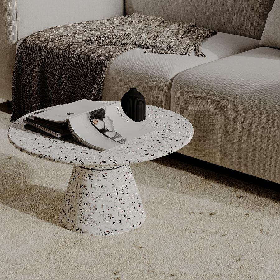 Столик журнальный Bayn – не просто предмет мебели, а интересный акцент интерьера, который прекрасно комбинируется с различными стилевыми решениями и позволяет играть на контрастах. Столешница и основание столика выполнены из материала терраццо, характеризующегося высокой прочностью и устойчивостью к износу. В его состав входят мелкие кусочки натурального камня, скрепленные цементным раствором с добавлением пластификаторов. Поверхность терраццо гладкая, приятная на ощупь, прекрасно смотрится и не требует сложного ухода. Столешница диаметром 60 см позволяет размещать все необходимое – от чашек кофе до любимых книг и декора. При этом модель имеет компактные размеры, что способствует экономии полезного пространства. Материал: терраццо. Размеры: 60х60х32 см. Цвет: белый. Пыль и загрязнения можно удалять с поверхностей при помощи мягкого влажного материала. После очищения стол рекомендуется протереть сухой тканью.