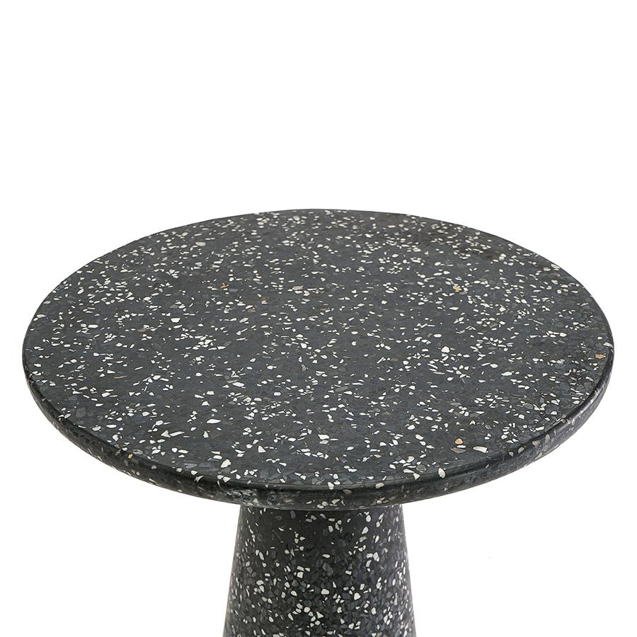 Столик кофейный Bayn – не просто предмет мебели, а интересный акцент интерьера, который прекрасно комбинируется с различными стилевыми решениями и позволяет играть на контрастах. Столешница и основание столика выполнены из материала терраццо, характеризующегося высокой прочностью и устойчивостью к износу. В его состав входят мелкие кусочки натурального камня, скрепленные цементным раствором с добавлением пластификаторов. Поверхность терраццо гладкая, приятная на ощупь, прекрасно смотрится и не требует сложного ухода. Столешница диаметром 45 см позволяет размещать все необходимое – чашки кофе, десерты и прочее. При этом модель имеет компактные размеры, что способствует экономии полезного пространства. Материал: терраццо. Размеры: 45х45х55 см. Цвет: черный. Пыль и загрязнения можно удалять с поверхностей при помощи мягкого влажного материала. После очищения стол рекомендуется протереть сухой тканью.