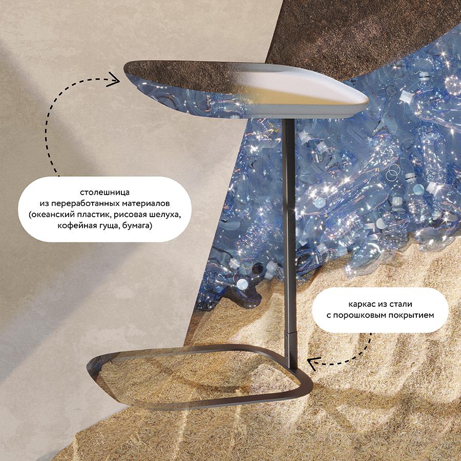 Столик приставной Sustainable collection – не просто предмет мебели, а олицетворение заботы об окружающей среде и стремления к функциональному дизайну. Особенности и преимущества: - Материалы, использованные в создании столешницы, не только делают ее прочной и устойчивой, но и снижают негативное воздействие на окружающую среду. - Стальной каркас с порошковым покрытием обеспечивает столику практичность, надежность и долгий срок службы. - Основание специальной формы гарантирует конструкции устойчивость. - Нейтральное цветовое решение позволяет легко интегрировать мебель в различные варианты оформления интерьера. Коллекция Sustainable создана с применением переработанных материалов, таких как рисовая шелуха, кофейная гуща, бумага и пластик, собранный в океане. Такой подход к производству товаров помогает уменьшить негативное влияние потребительского образа жизни на окружающую среду и вдохновляет на выбор осознанного пути развития. Полученные таким способом предметы имеют необычный вид и высокие эксплуатационные характеристики. Материалы: столешница – переработанный материал, каркас – сталь с порошковым покрытием. Размеры: 40,6х27,8х55 см. Цвет: серый/черный. Пыль и загрязнения с поверхностей можно удалять при помощи мягкого влажного материала. Сразу после очищения мебель рекомендуется протереть сухой тканью. Запрещается применение жестких щеток, абразивов, порошкообразных и едких средств на основе кислот.
