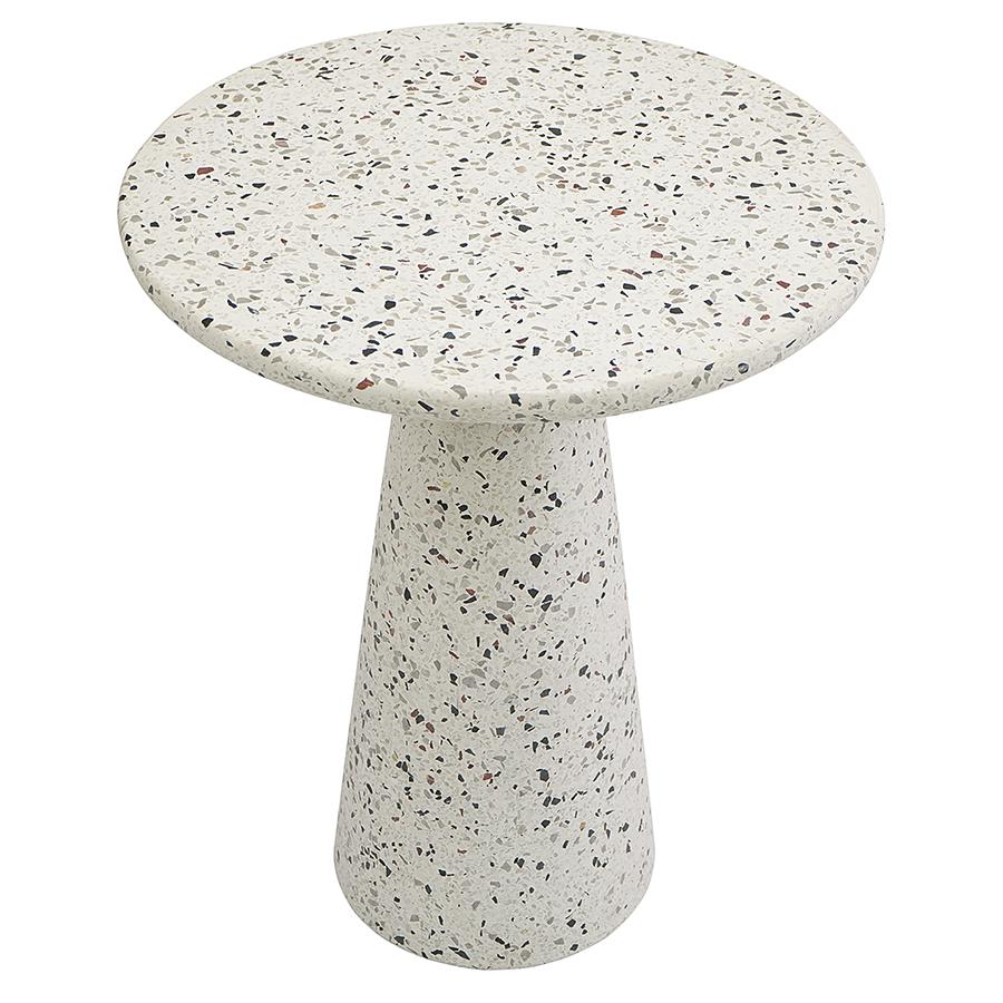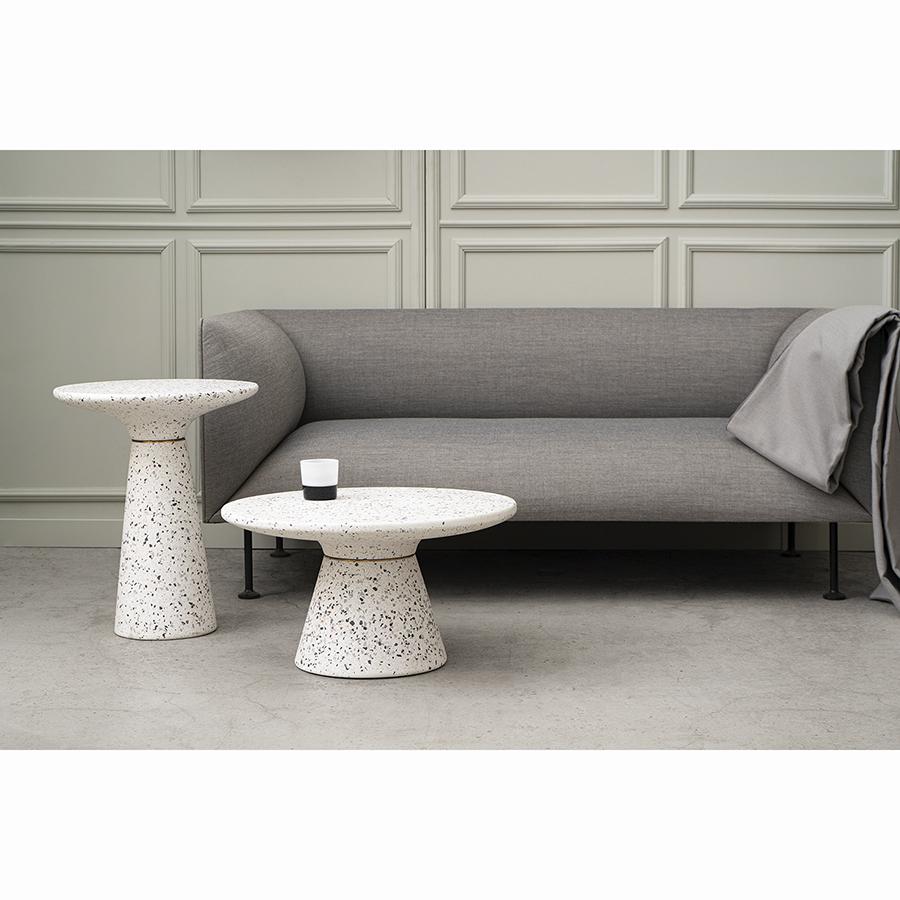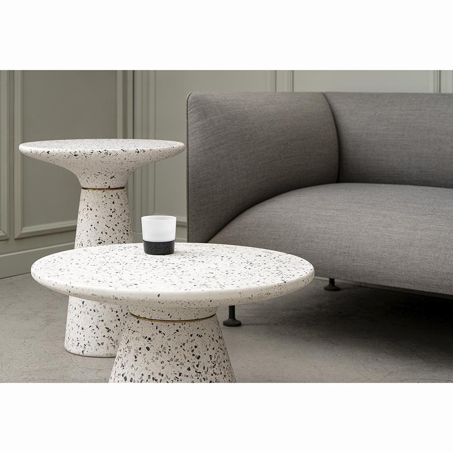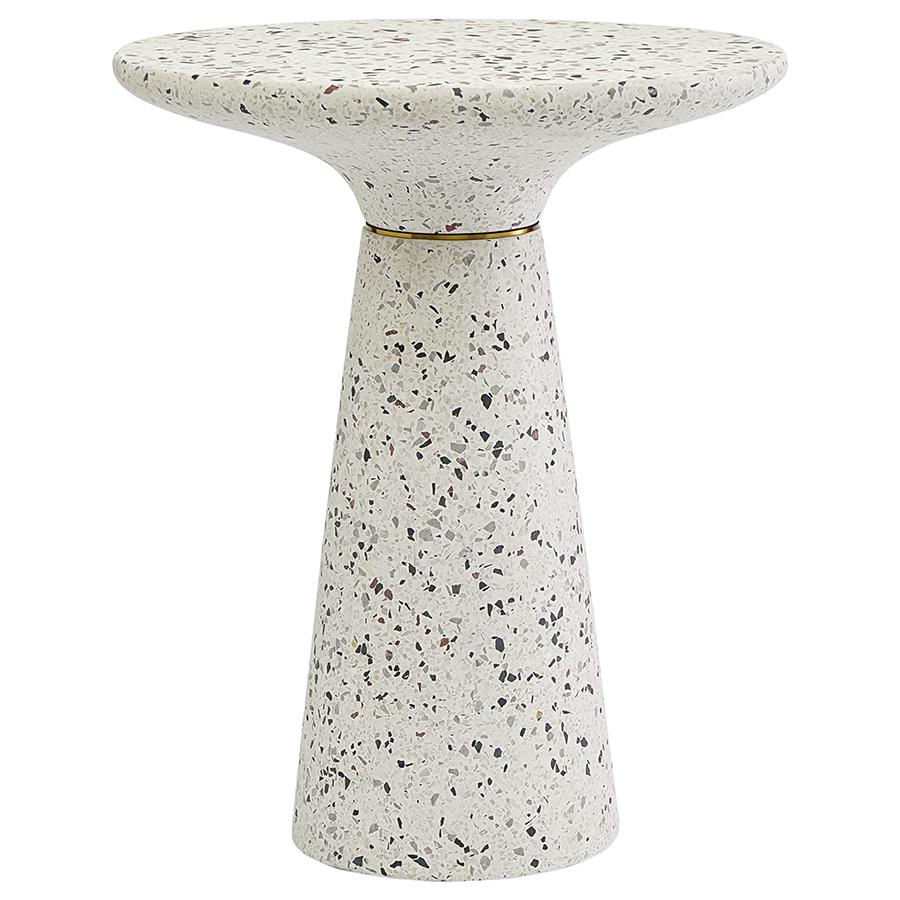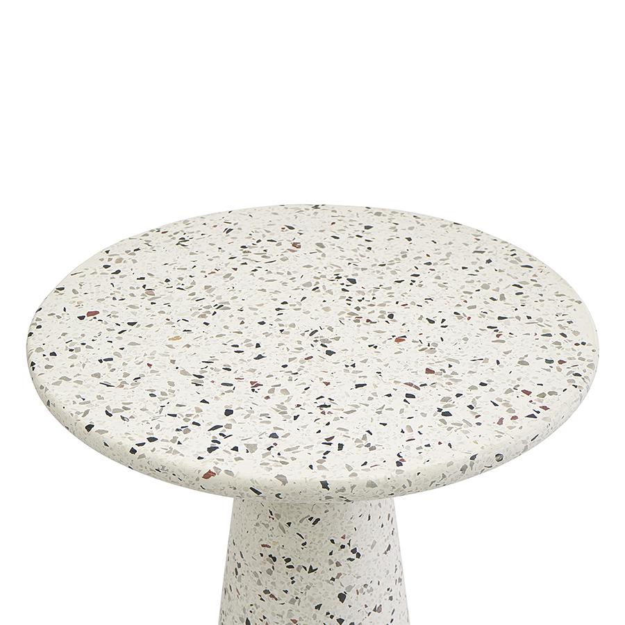 Столик кофейный Bayn – не просто предмет мебели, а интересный акцент интерьера, который прекрасно комбинируется с различными стилевыми решениями и позволяет играть на контрастах. Столешница и основание столика выполнены из материала терраццо, характеризующегося высокой прочностью и устойчивостью к износу. В его состав входят мелкие кусочки натурального камня, скрепленные цементным раствором с добавлением пластификаторов. Поверхность терраццо гладкая, приятная на ощупь, прекрасно смотрится и не требует сложного ухода. Столешница диаметром 45 см позволяет размещать все необходимое – чашки кофе, десерты и прочее. При этом модель имеет компактные размеры, что способствует экономии полезного пространства. Материал: терраццо. Размеры: 45х45х55 см. Цвет: белый. Пыль и загрязнения можно удалять с поверхностей при помощи мягкого влажного материала. После очищения стол рекомендуется протереть сухой тканью.
