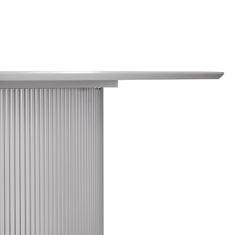 Стол Ellie удачно сочетает практичные материалы и стильный дизайн, благодаря чему отлично подходит для обустройства обеденной зоны и пространства для отдыха. Столешница с меламиновым покрытием не боится воздействия влаги, УФ и не требует специального ухода. Основание из окрашенной МДФ обеспечивает конструкции устойчивость и надежность. Такой столик станет не просто функциональным предметом интерьера, но и оригинальным декором. Материалы: МДФ, меламин. Диаметр: 120 см. Высота: 76 см. Цвет: серый. Пыль и загрязнения с поверхностей можно удалять мягкой влажной губкой или салфеткой.