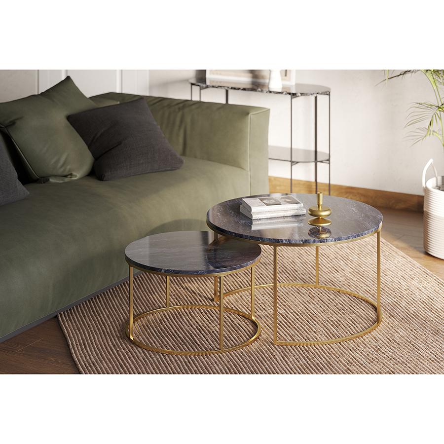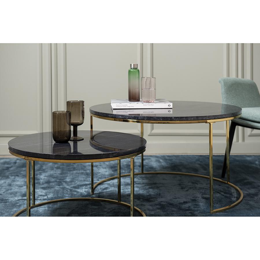 Стол Bergenson Bjorn Набор из 2-х журнальных столиков hans, D60 см и D80 см, черный мрамор арт. TAI-HN-TBL-BRMRB-BK-80-60