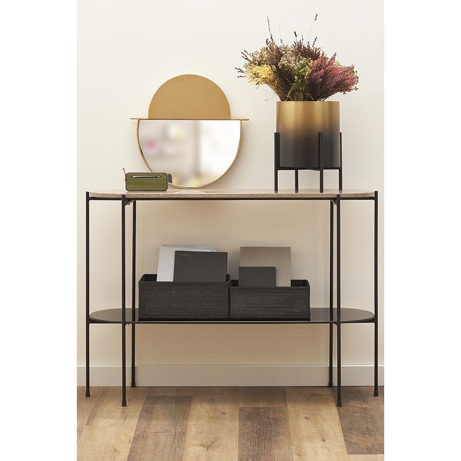 Стол консольный Sigryd от дизайнерского бренда Bergenson Bjorn идеально подходит для обустройства любых комнат в помещении. В гостиной он отлично будет смотреться у стены или рядом с диваном. Вы сможете разместить на нем рамки для фотографий, вазы, свечи и другие предметы для украшения пространства. В прихожей его можно поставить у дверей для хранения почты и других необходимых вещей. В спальне такой предмет мебели может выполнять функцию туалетного столика или комода. Особенности и преимущества: - Сочетание мрамора, стекла и железа обеспечивает модели презентабельный вид и высокую устойчивость к износу. - Материалы являются экологичными, практичными, долговечными, хорошо очищаются от загрязнений. - Благодаря компактности и небольшому весу стол можно легко перемещать и устанавливать в любом удобном месте. - Наличие двух столешниц позволяет размещать больше предметов. ! Обращаем ваше внимание, что этот предмет мебели изготовлен вручную и может быть не идеален. Небольшие неровности, потертости и различия в цвете – это не брак, а индивидуальная особенность товара, произведенного ручным способом. Материал: железо, мрамор, стекло. Размеры: 113х33х79 см. Важно! Натуральный мрамор не обладает водоотталкивающим эффектом. Структура материала пористая, из-за чего он может впитывать жидкости и другие вещества. Чтобы защитить поверхность от пятен, ее можно обработать специальными защитными средствами (пропитки для мрамора). Как ухаживать за поверхностью из мрамора: 1) Чтобы очистить поверхность из мрамора, протрите ее слегка влажной тканью, избегая длительного контакта с водой. Можно использовать мягкие чистящие жидкости, но не абразивные и не кислотные средства. 2) Образовавшиеся пятна можно очистить с помощью специальных средств для каменных поверхностей. 3) Защитная обработка: регулярно наносите защитный слой из пропитки для мрамора. Это позволит защитить поверхность и сделать ее более герметичной, устойчивой к появлению пятен. Можно использовать любую пропитку, которая подходит для натурального мрамора. 4) Использовать пропитку рекомендуется 1 раз в 6–12 месяцев, но не менее 1 раза в год, чтобы поддерживать ее защитный барьер от влаги, масел и грязи. Эта профилактическая мера помогает сохранить идеальный внешний вид камня и продлить срок его службы. 5) Постарайтесь избегать попадания масла и кислотных жидкостей на поверхность столешницы. Любую пролитую жидкость вытирайте насухо сразу же. 6) Во избежание появления новых пятен, используйте подставки под блюда, кружки, бокалы. 7) Не ставьте горячие и холодные емкости непосредственно на столешницу. 8) Не режьте на столешнице.