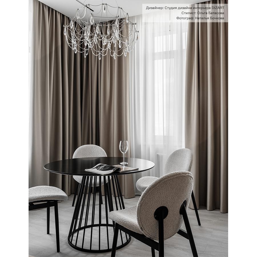 Обеденный стол Tyra – яркий пример удачного сочетания стильного дизайна и практичности. В пространствах в стиле лофт, сканди и минимализм этот предмет мебели поможет сделать акцент на простой и функциональной обстановке, а классическому интерьеру придаст новое звучание. Особенности и преимущества: - Столешница из устойчивой к износу МДФ не требует сложного ухода и долго сохраняет привлекательный вид. - Конусовидное основание из прочного железа делает дизайн интересным, обеспечивает конструкции стабильность, надежность и долговечность. - Сочетание элегантности и практичности дает возможность использовать модель не только в домашних условиях, но и для обустройства коммерческих помещений. - Стол с круглой столешницей позволяет комфортно разместить большее количество человек, при этом не занимает много места. Материалы: железо, МДФ. Размеры: 110х110х75 см. Диаметр основания: 65 см. Цвет: черный. Пыль и загрязнения с поверхностей можно удалять при помощи мягкого влажного материала. Сразу после очищения мебель рекомендуется протереть сухой тканью. Запрещается применение жестких щеток, абразивов и агрессивной бытовой химии.