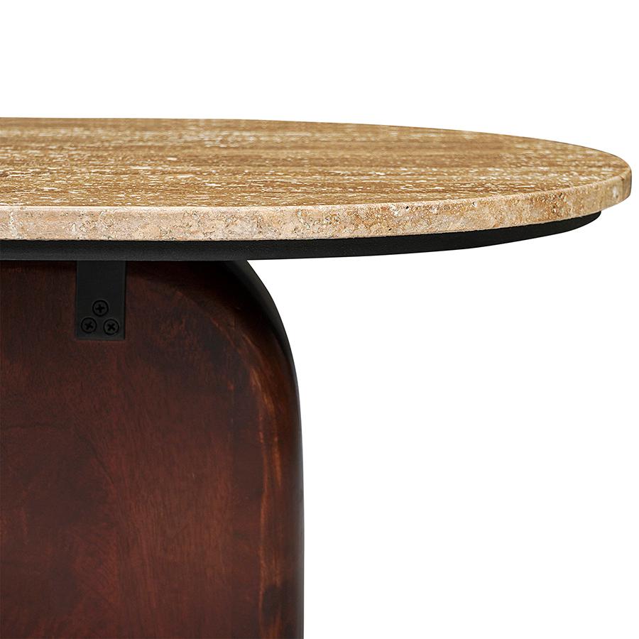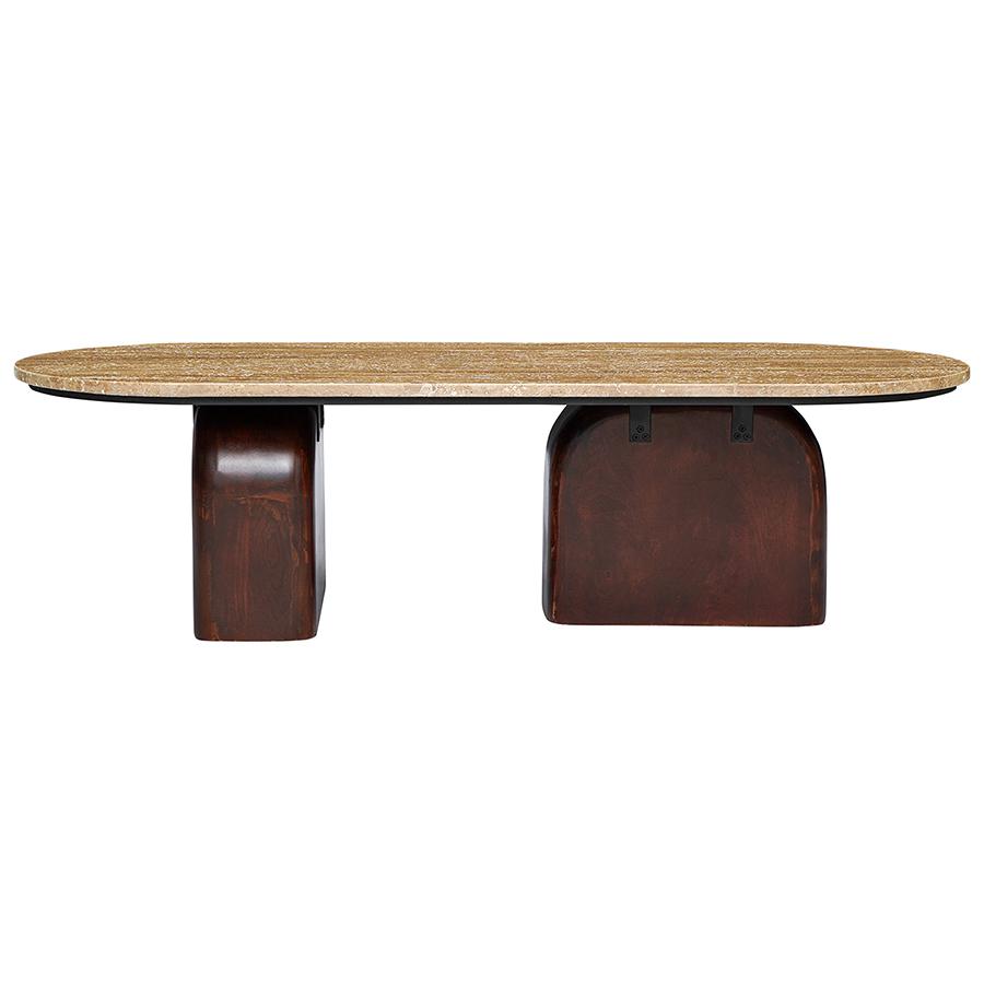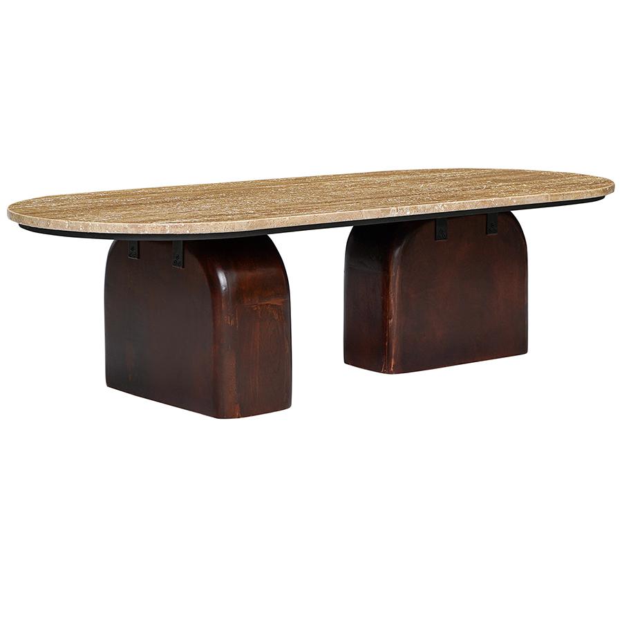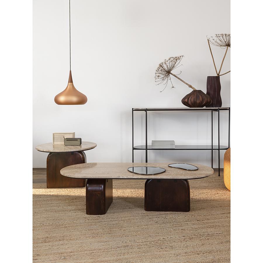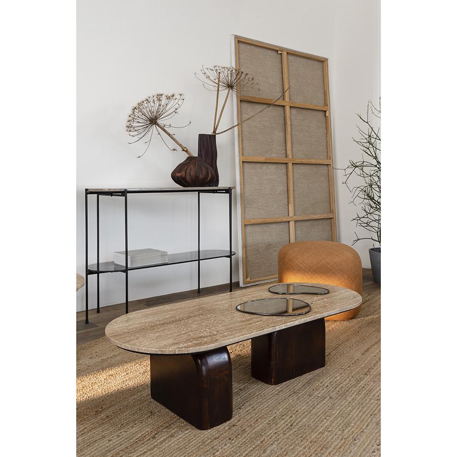 Столик журнальный Torhill от дизайнерского бренда Bergenson Bjorn – элегантное и функциональное дополнение к любому интерьеру. Столешница из травертина и основание из дерева создают прекрасный тандем, который привносит в интерьер ощущение гармонии и единения с природой. Особенности и преимущества: - Материалы выдерживают испытание временем, долго сохраняя привлекательный вид и первоначальные характеристики. - Столешница из травертина делает модель интересной, не боится повреждений, пятен и царапин. - Основание из дерева обеспечивает конструкции устойчивость, надежность и долговечность. - Нейтральность травертина и естественный оттенок древесины позволяют вписать столик в интерьер, оформленный в любой цветовой гамме. ! Обращаем ваше внимание, что этот предмет мебели изготовлен вручную и может быть не идеален. Небольшие неровности, потертости и различия в цвете – это не брак, а индивидуальная особенность товара, произведенного ручным способом. Материал: дерево, травертин. Размеры: 120х50х30 см. Цвет: бежевый/орех. Пыль и загрязнения с поверхностей можно удалять при помощи мягкого влажного материала. Сразу после очищения мебель рекомендуется протереть сухой тканью. Запрещается применение жестких щеток, абразивов и агрессивной бытовой химии.