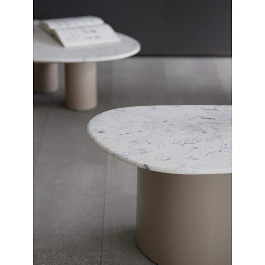 Дизайнеры Bergenson Bjorn создают изящные, но прочные кофейные и журнальные столики с металлическим основанием и столешницами из мрамора, МДФ, каменной керамики или зеркального стекла.
