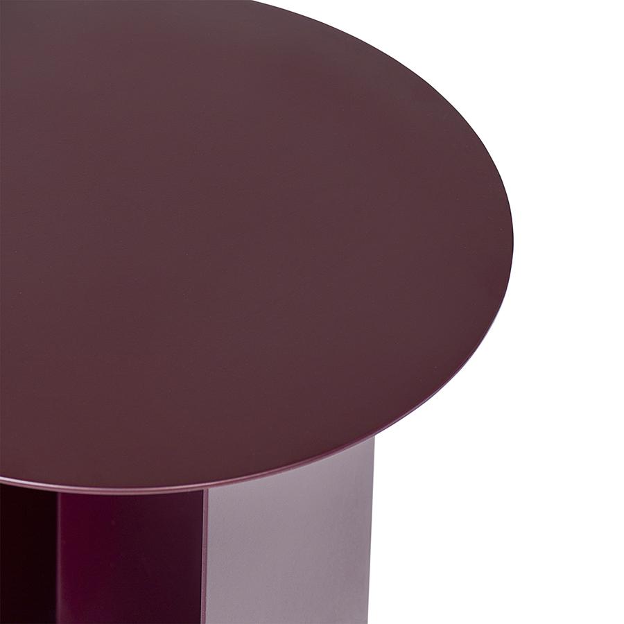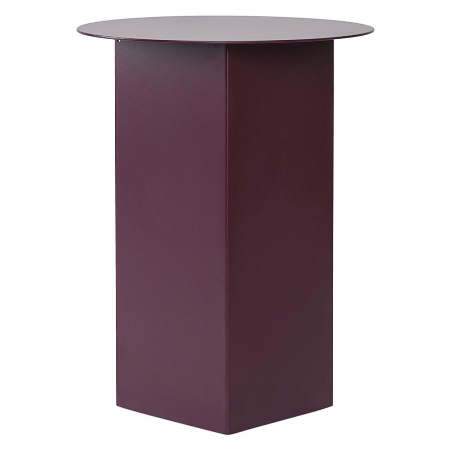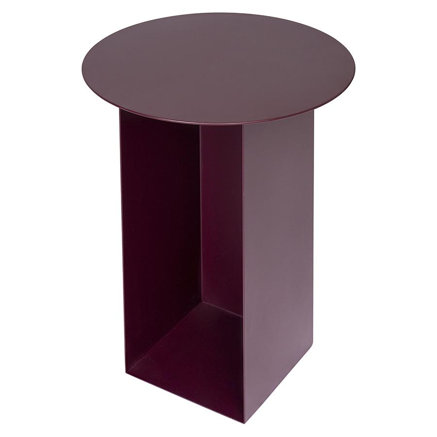 Столик журнальный Silje – удобная и функциональная мебель с минималистичным дизайном, которая великолепно дополнит любой современный интерьер. Вы можете поставить его у дивана в гостиной или у кровати в спальне, чтобы разместить необходимые предметы или декор. Особенности и преимущества: - Конструкция полностью выполнена из высокопрочной стали, что делает ее надежной и долговечной. - Модель с круглой столешницей не занимает много места и отлично подходит для помещений с небольшой площадью. - Специальное отделение в основании столика предоставляет дополнительное место для хранения различных предметов. - За счет модного цветового решения мебель может использоваться в качестве акцентного элемента. Материалы: столешница – углеродистая сталь, каркас – сталь. Размеры: 38х38х50 см. Цвет: сливовый. Пыль и загрязнения с поверхностей можно удалять при помощи мягкого влажного материала. Сразу после очищения мебель рекомендуется протереть сухой тканью. Запрещается применение жестких щеток, абразивов и агрессивной бытовой химии.