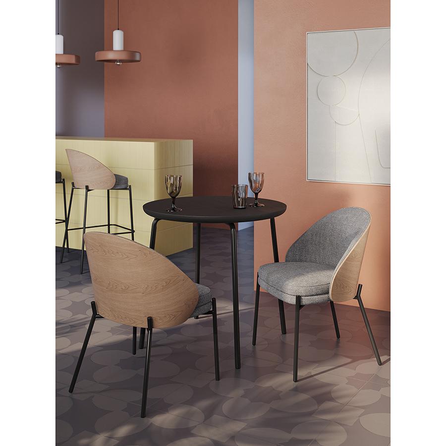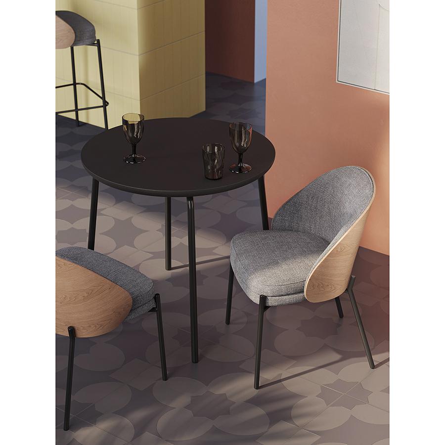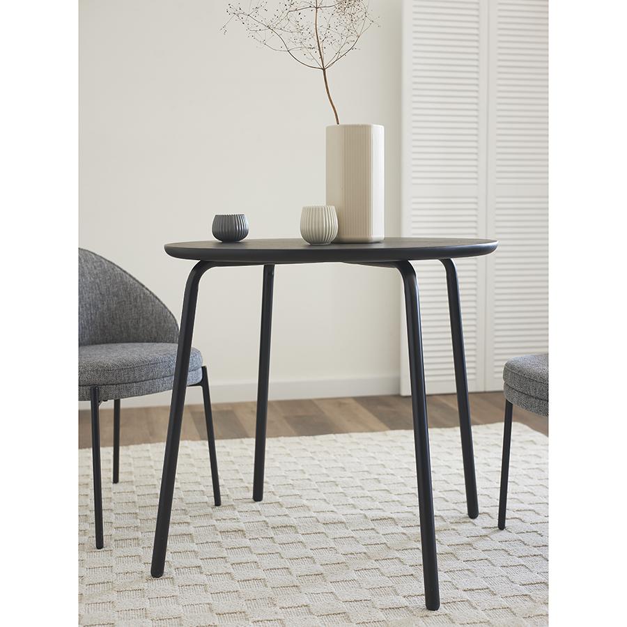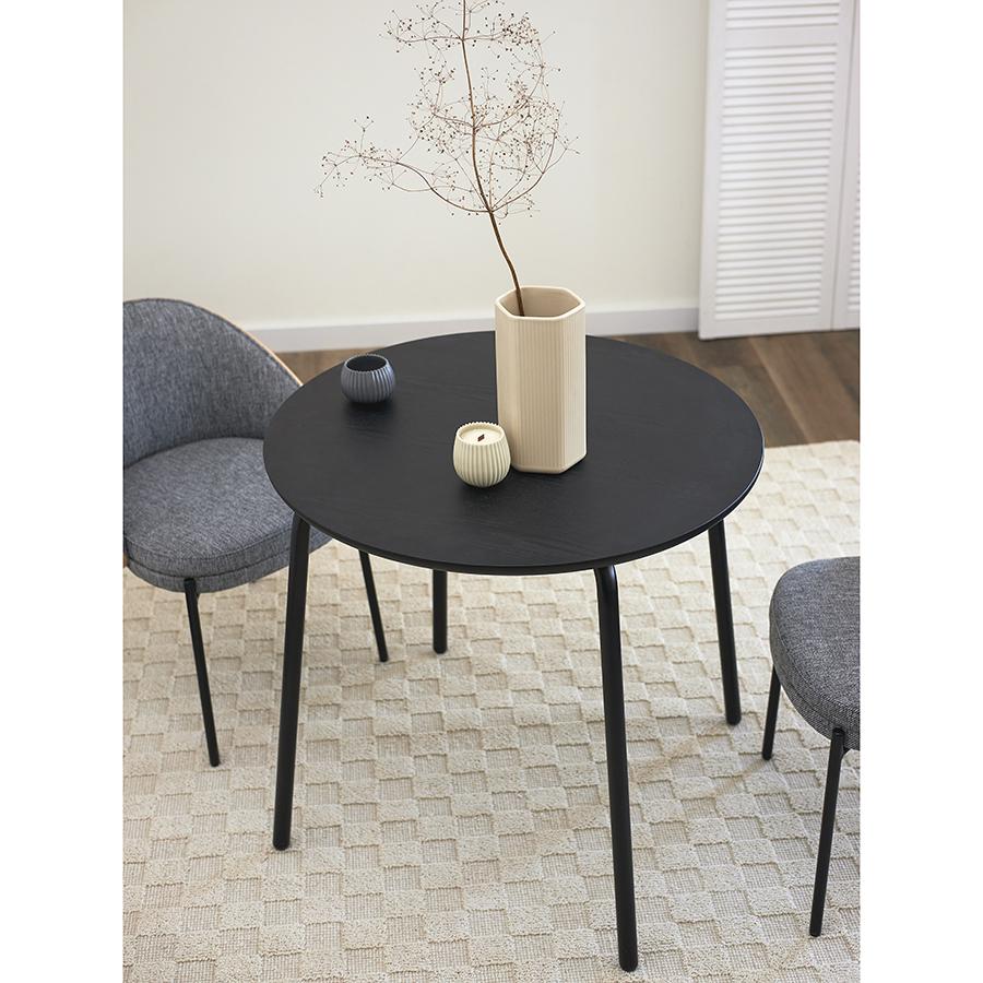 Стол обеденный Round прекрасно дополнит кухню или столовую в современном стиле. Простые, лаконичные формы и классическое цветовое решение позволят легко интегрировать этот предмет мебели в различные дизайнерские задумки. Особенности и преимущества: - Столешница из шпона ясеня отличается прочностью, эстетической привлекательностью, легко моется. - Устойчивые ножки из стали с порошковым покрытием обеспечивают надежность и долговечность конструкции. - Круглый стол смотрится элегантно, благородно, при этом уютно и занимает меньше места в интерьере, чем прямоугольные модели. Материалы: сталь, шпон ясеня. Диаметр: 80 см. Высота: 75,5 см. Цвет: черный. Пыль и загрязнения с поверхностей можно удалять при помощи мягкого влажного материала. После очищения стол рекомендуется протереть сухой тканью. Запрещается использование абразивов и агрессивной бытовой химии.