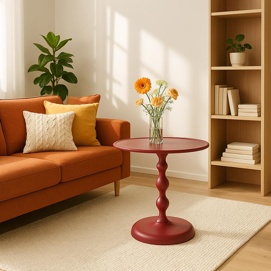 Столик кофейный Fluid – выбор тех, кто предпочитает современный дизайн и оригинальные решения. Выполненный в оттенке “жженый оранжевый”, он привлекает внимание и освежает любое пространство. Используйте его для размещения напитков, демонстрации декора, аксессуаров и как яркий акцент в любой из комнат. Особенности и преимущества: - Столешница и основание выполнены из алюминия, что делает стол легким, при этом прочным, надежным и долговечным. - Компактные размеры позволяют размещать его в любых помещениях – гостиной, спальне и даже на балконе. - Алюминиевую поверхность легко поддерживать в чистоте, что обеспечивает мебели практичность и удобство в использовании. ! Обращаем ваше внимание, что этот предмет мебели изготовлен вручную и может быть не идеален. Небольшие неровности, потертости и различия в цвете – это не брак, а индивидуальная особенность товара, произведенного ручным способом. Материал: алюминий. Размеры: 59х53х36,7 см. Диаметр опоры: 32 см. Цвет: жженый оранжевый.. Пыль и загрязнения с поверхностей можно удалять при помощи мягкого влажного материала. Сразу после очищения мебель рекомендуется протереть сухой тканью. Запрещается применение жестких щеток, абразивов и агрессивной бытовой химии на основе кислот.