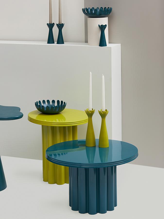 Дизайнеры Bergenson Bjorn создают изящные, но прочные кофейные и журнальные столики с металлическим основанием и столешницами из мрамора, МДФ, каменной керамики или зеркального стекла.