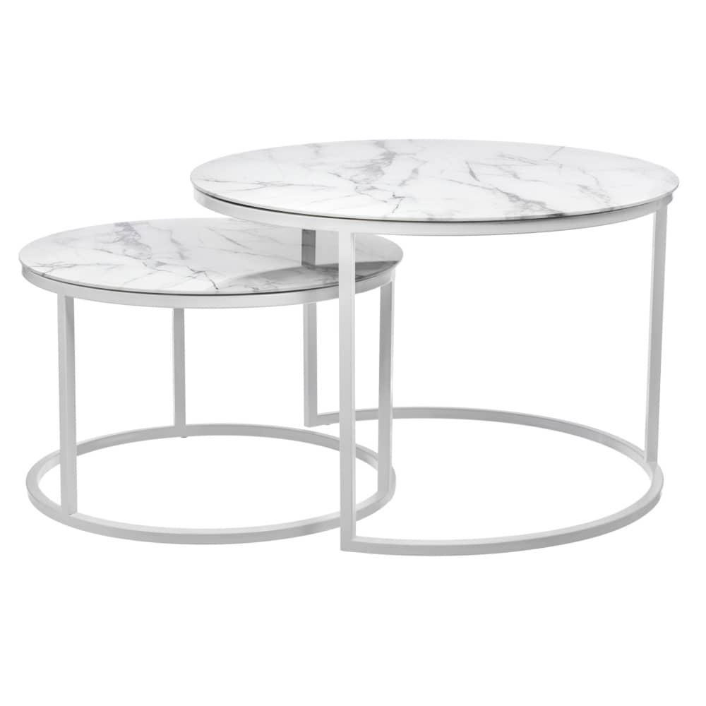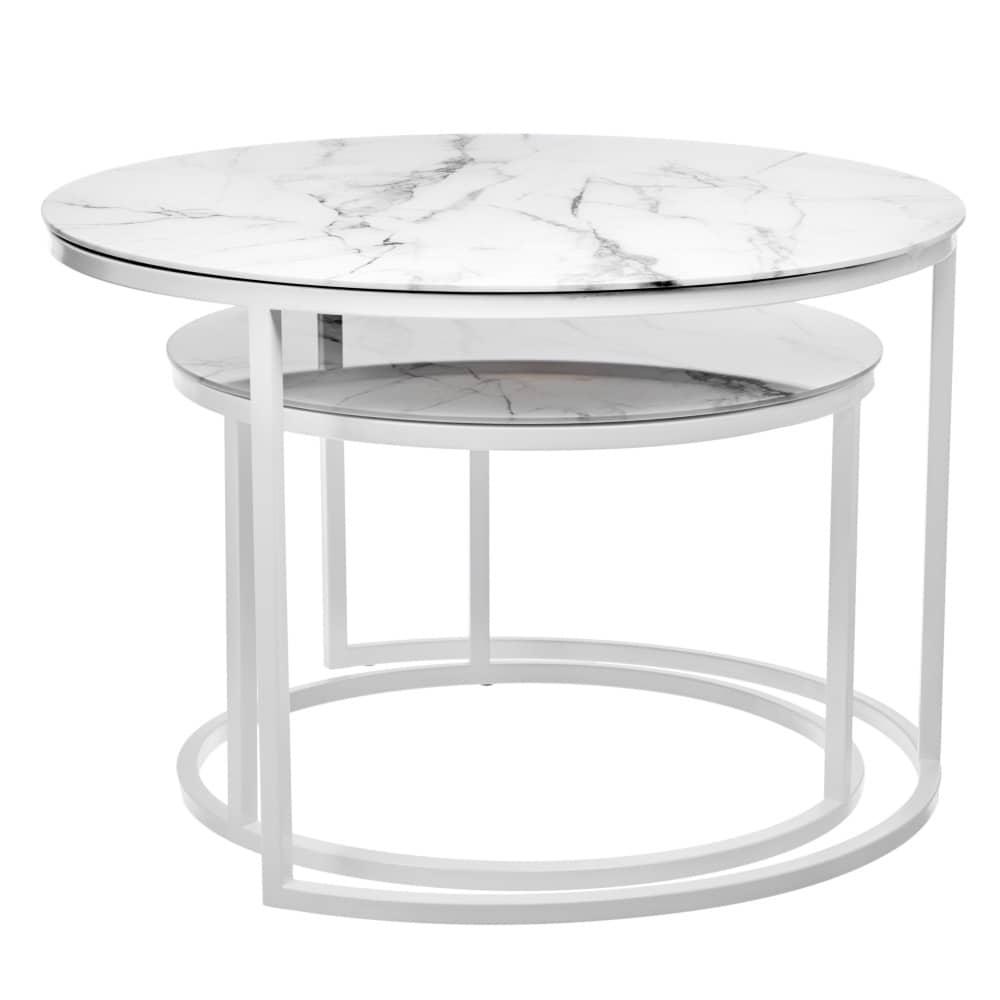 Стол Bradexhome Набор кофейных столиков Tango белый мрамор с белыми ножками арт. RF 0600