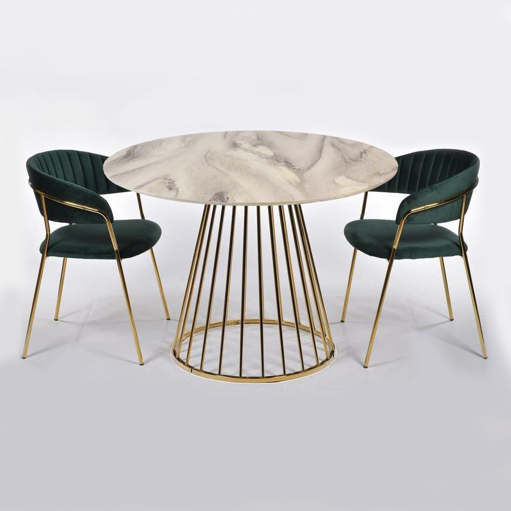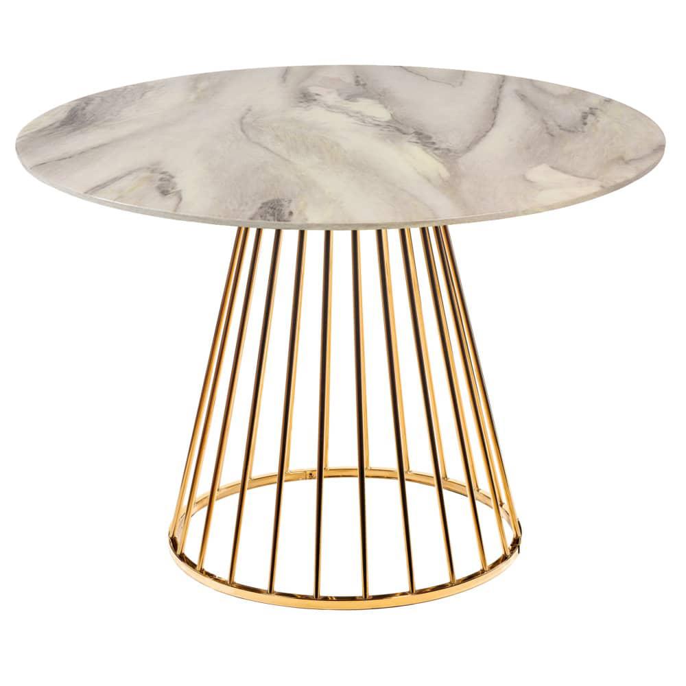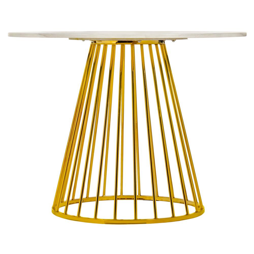 Стол Bradexhome Стол Liverpool диам.100см, керамогранит белый мрамор с золотистыми ножками арт. FR 0947