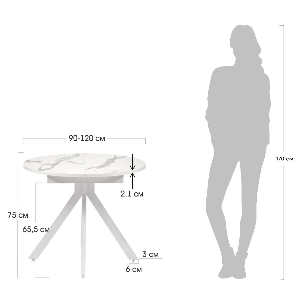 Стол Bradexhome Стол Rudolf круглый раскладной 90-120x90x75см, белый мрамор, белый арт. RF 0465