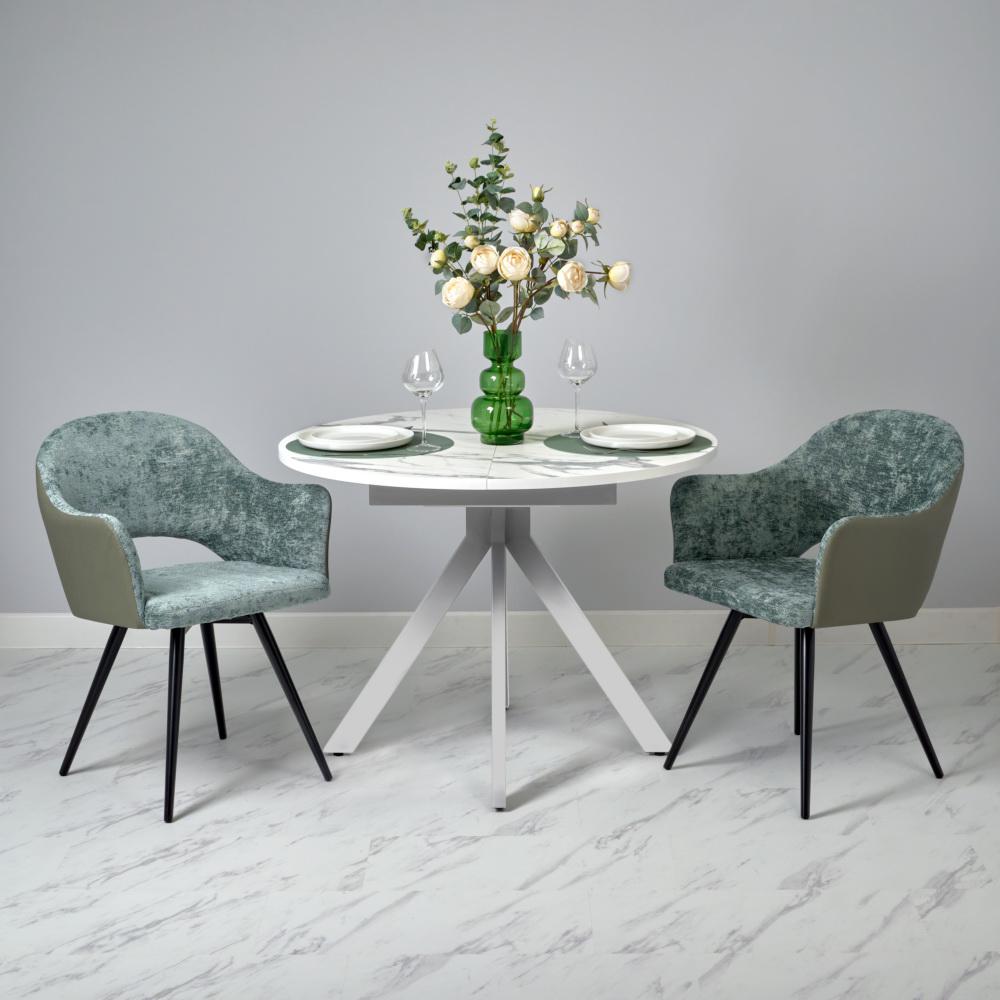 Стол Bradexhome Стол Rudolf круглый раскладной 100-130x100x75см, белый мрамор, белый арт. RF 0523