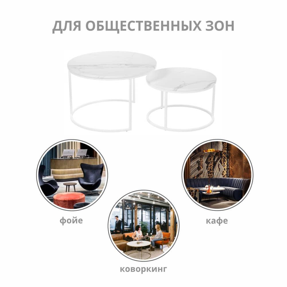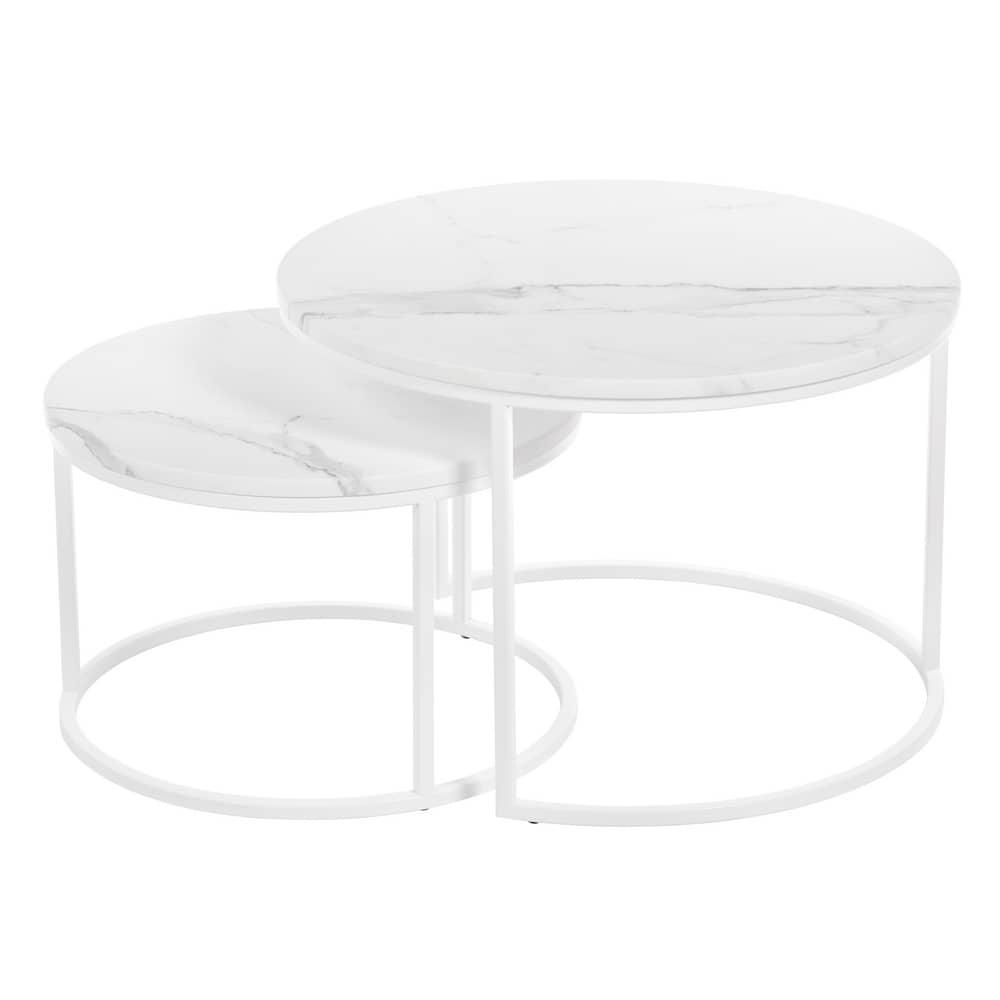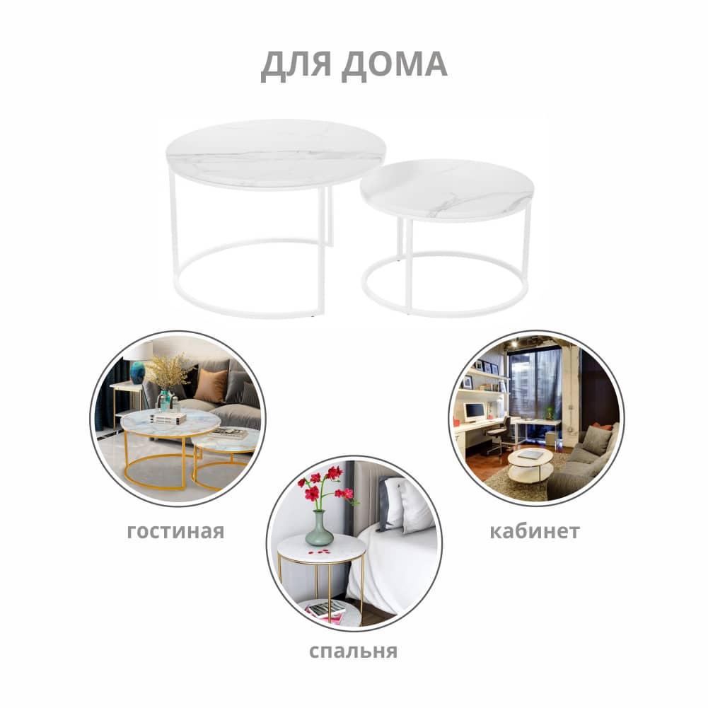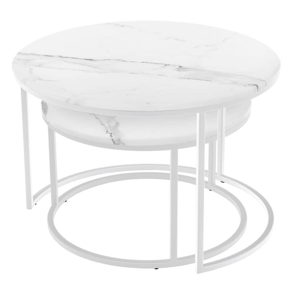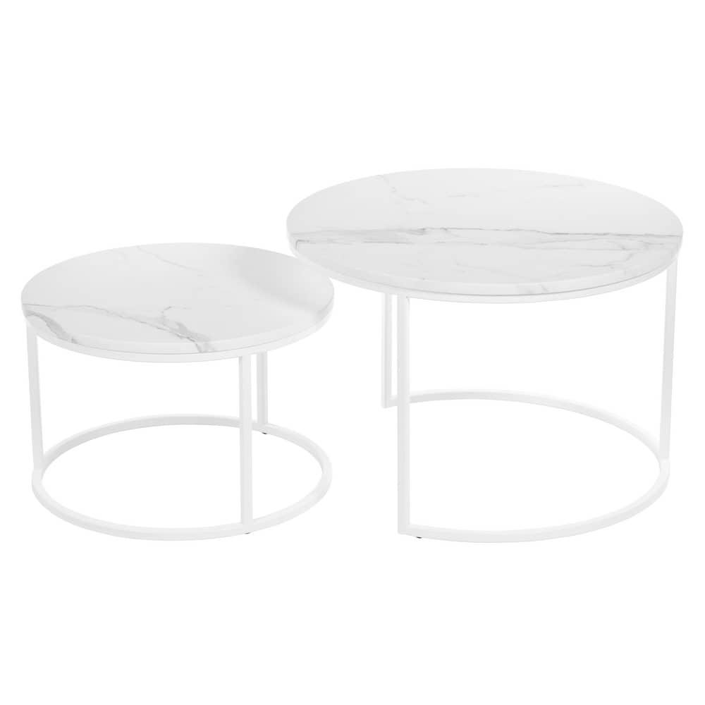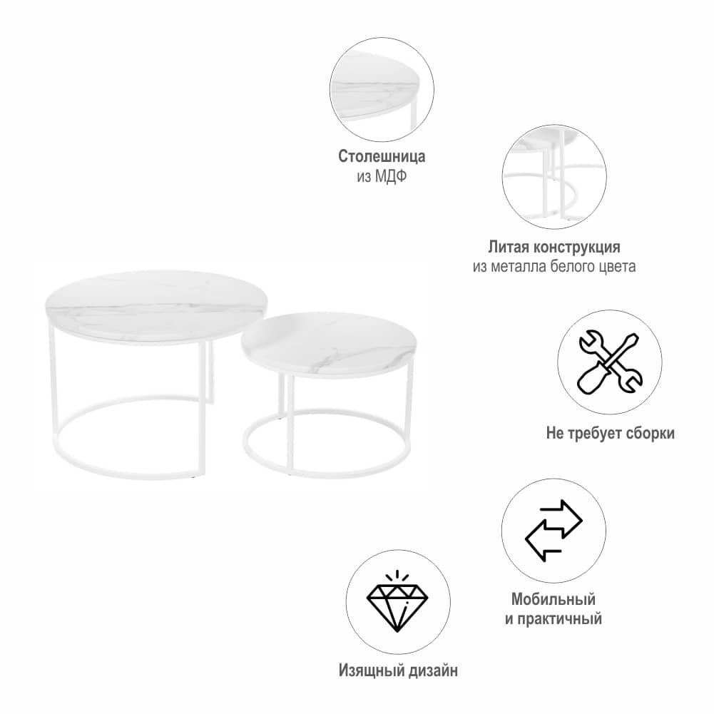 Стол Bradexhome Набор кофейных столиков Tango белый мрамор с белыми ножками, 2шт арт. RF 0351