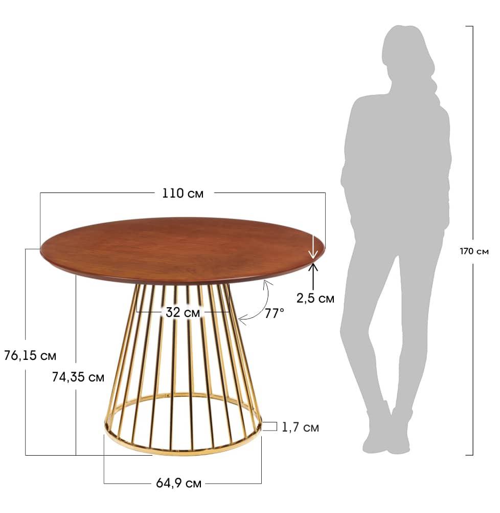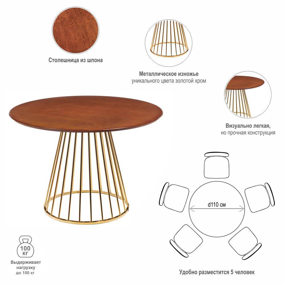 Стол Bradexhome Стол Liverpool 110см шпон орех, золотистые ножки арт. RF 0439