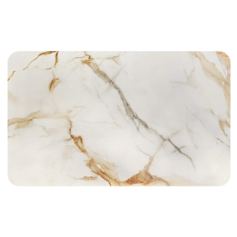 Роскошный дизайн: кристально-белый фон столешницы с элегантными серыми прожилками и изысканными золотистыми деталями добавляет нотку роскоши и утонченности вашему интерьеру.