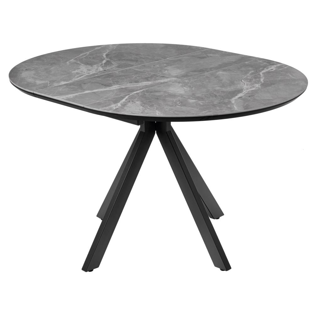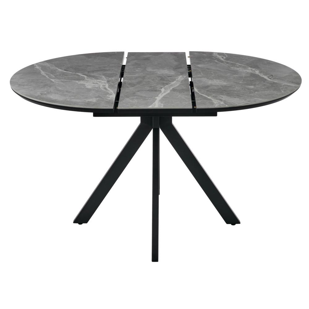Стол Bradexhome Стол Rudolf круглый раскладной 100-130x100x75см, серый керамогранит, черный арт. RF 0643