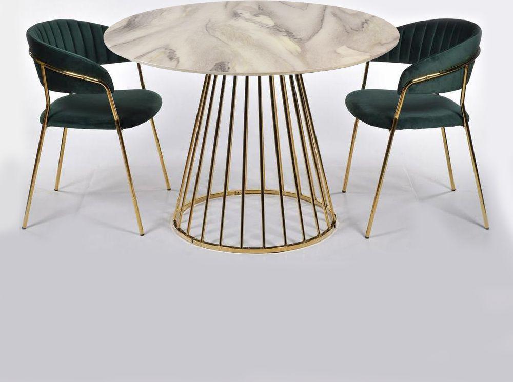 Стол Bradexhome Стол Liverpool диам.100см, керамогранит белый мрамор с золотистыми ножками арт. FR 1059