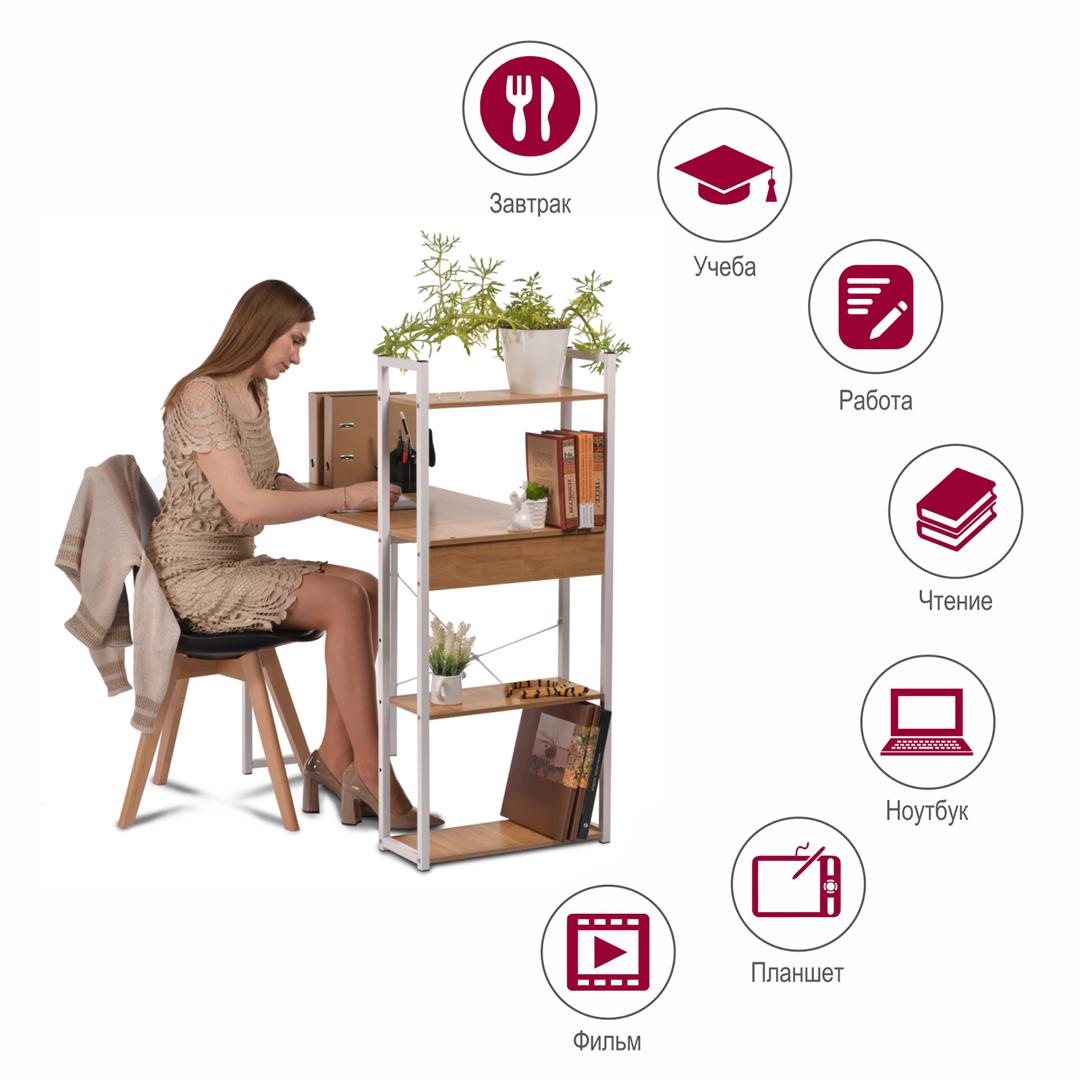 Стол Bradexhome Стол письменный с полками Frame 100x45x110 см, светлое дерево, белый арт. FR 0691