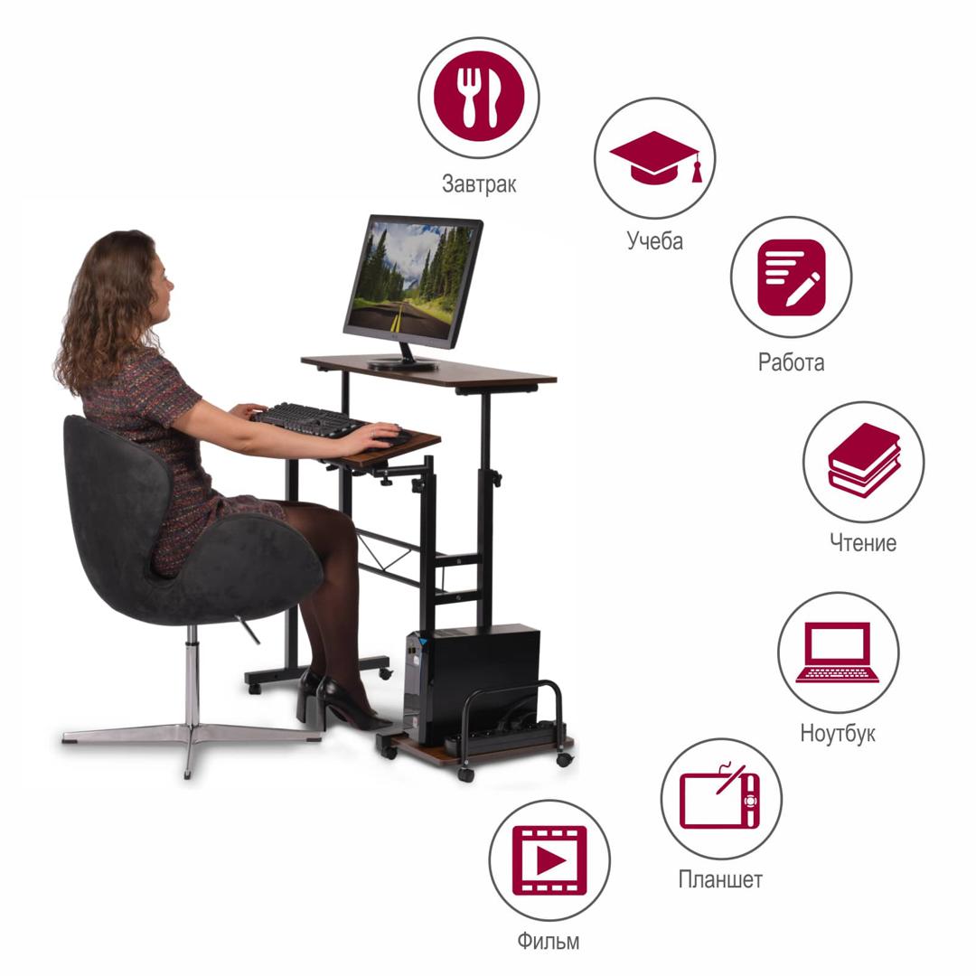 Стол "Shuttle" настоящая находка для владельцев полноразмерных домашних компьютеров. На отдельных специальных поверхностях можно разместить монитор и системный блок. Раздельные поверхности для клавиатуры и мыши можно отрегулировать под разным углом, а ограничитель не позволит клавиатуре соскальзывать. В целом, стол позволит полноценно работать за компьютером не загромождая пространство.