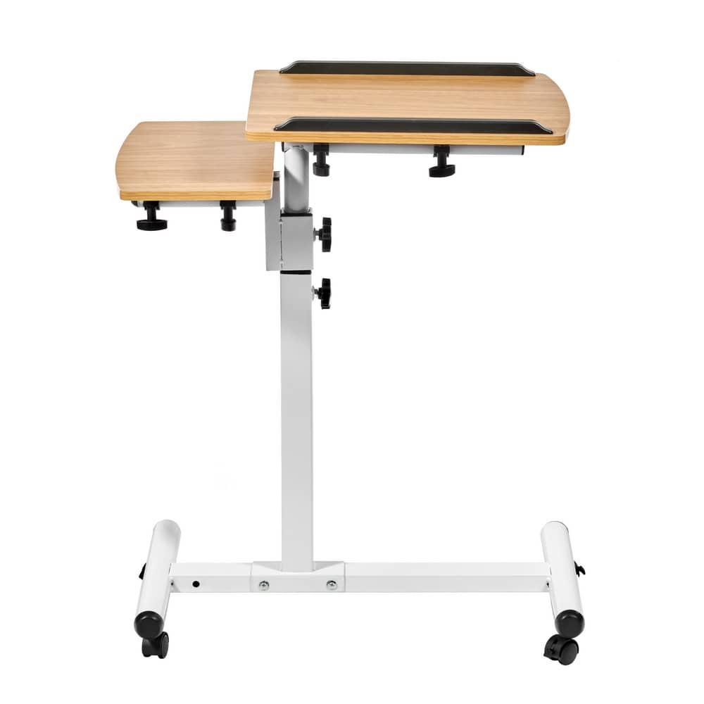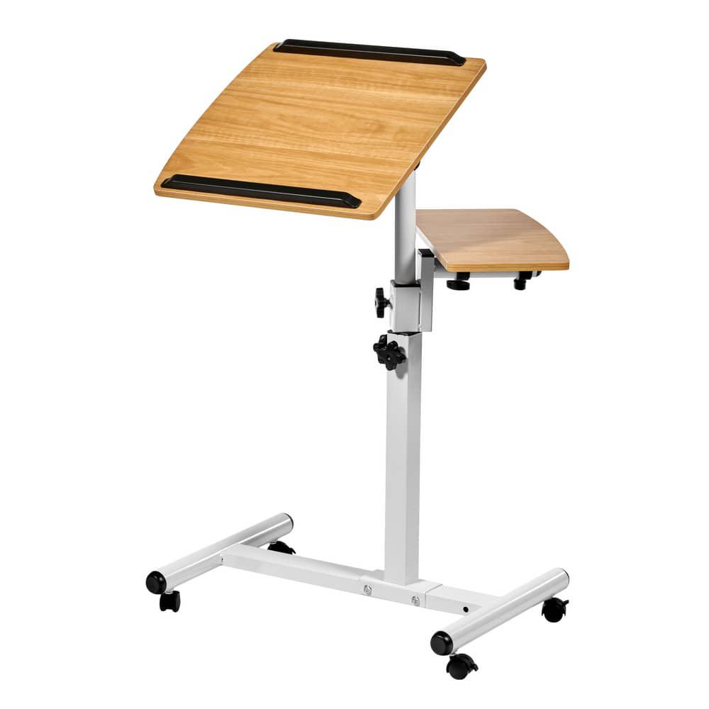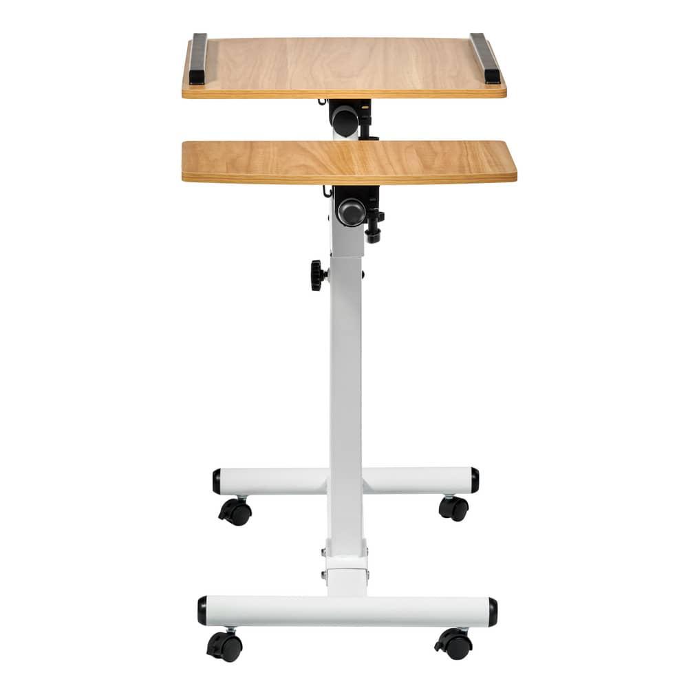 Столик оборудован поворотной столешницей из МДФ, состоящей из двух независимых частей, и металлическим основанием. Угол поворота столешницы составляет 180°, вплоть до вертикального положения. Высота подъема регулируется в диапазоне от 62 до 96 см. На столешнице имеются ограничители для ноутбука, планшета, предотвращающие падение гаджета.