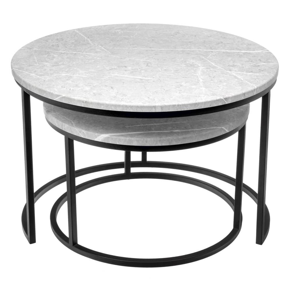 Стол Bradexhome Набор кофейных столиков Tango светло-серый мрамор с чёрными ножками, 2шт арт. RF 0610