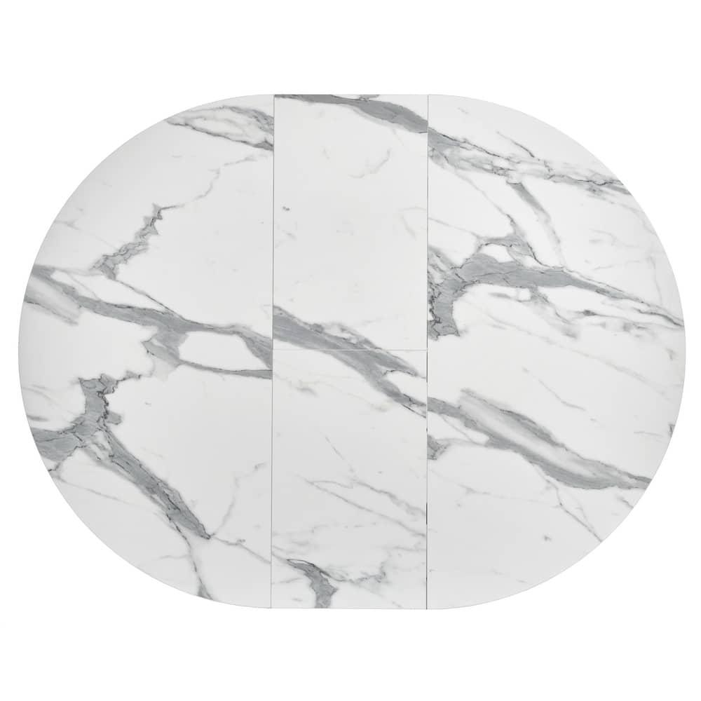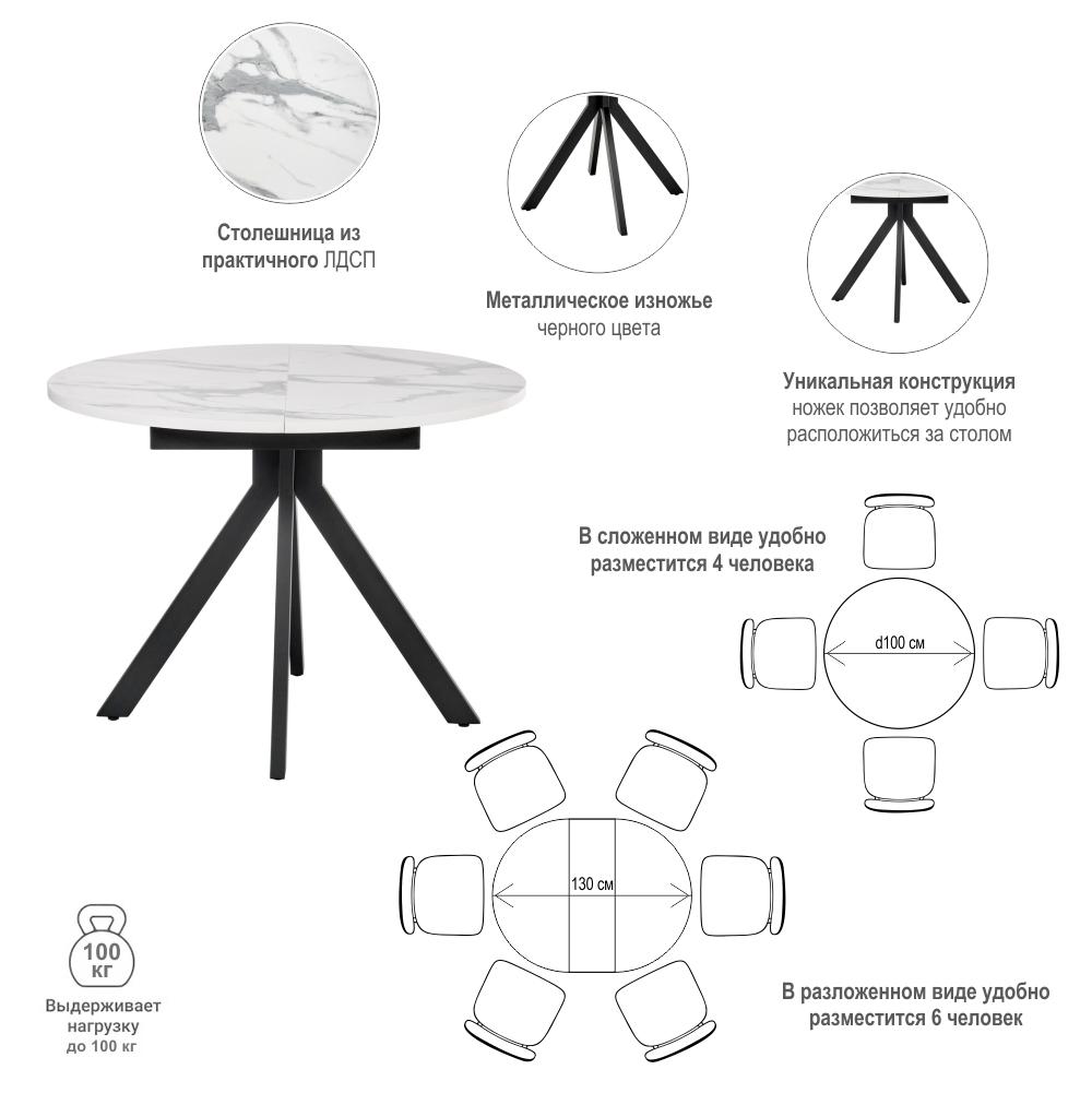 Стол Bradexhome Стол Rudolf круглый раскладной 100-130x100x75см, белый мрамор, чёрный арт. RF 0417