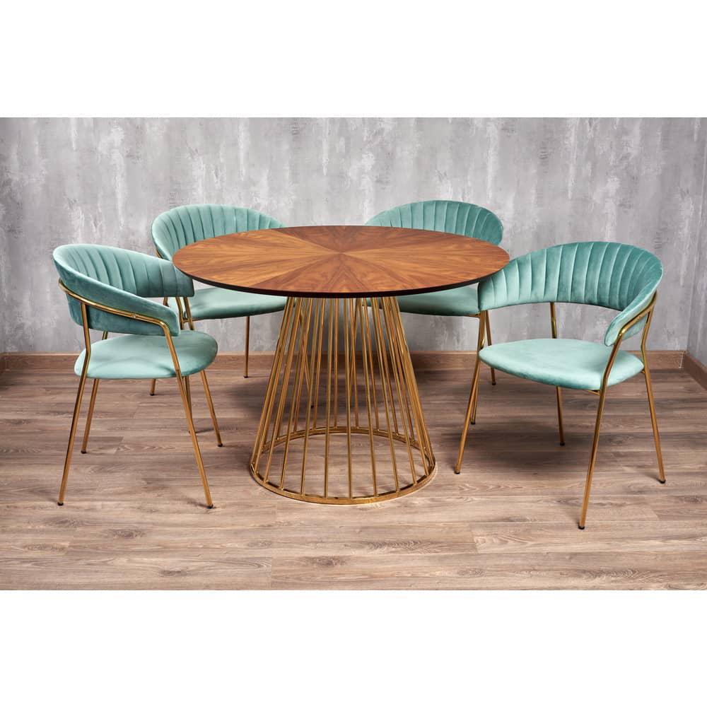 Стол Bradexhome Стол Liverpool диам.110см, шпон орех лучевой набор, с золотистыми ножками арт. RF 0518