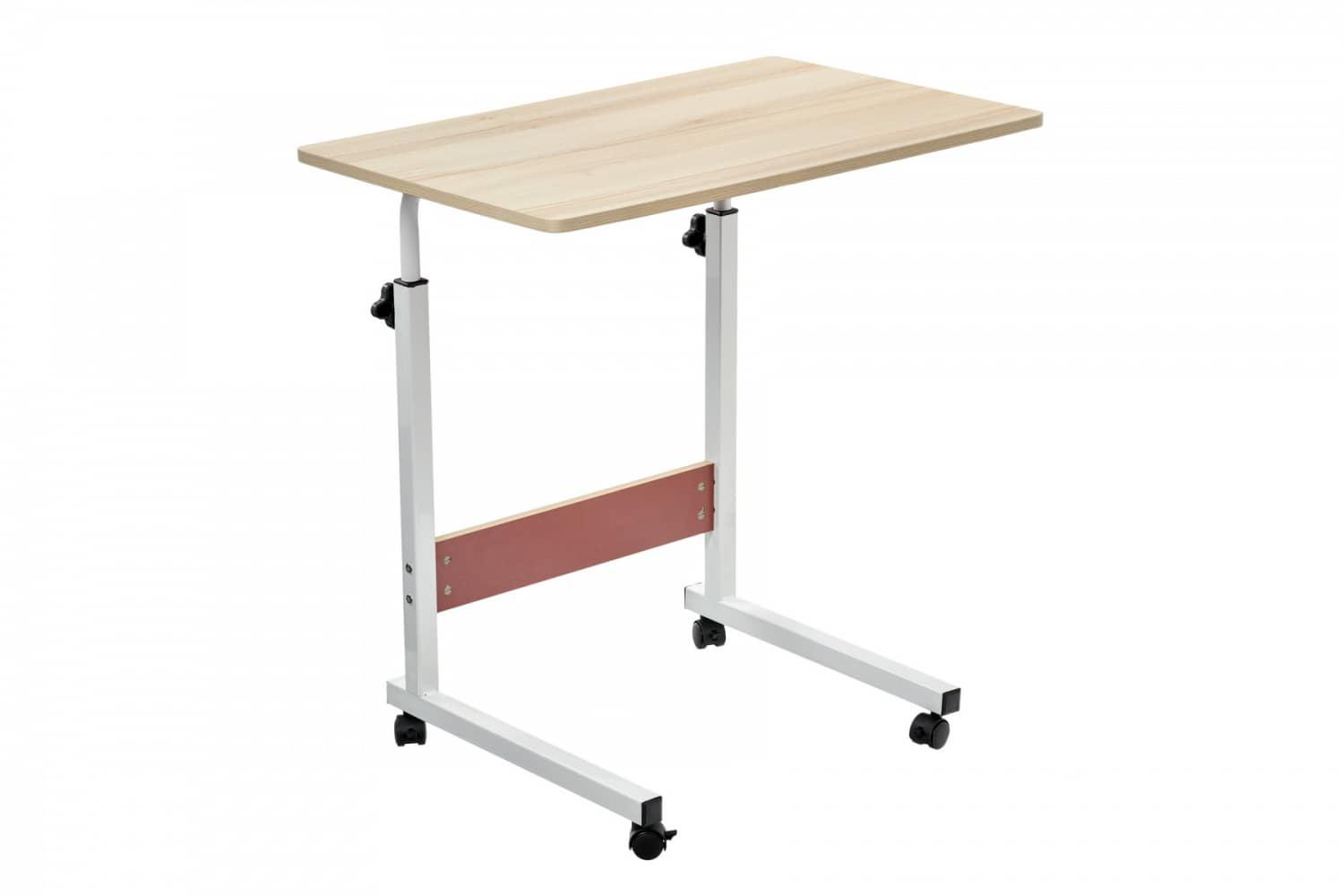 Стол Bradexhome Стол многофункциональный на колесах, 60x40 см, «РОЛЛ», 2 ножки, регул.высота, мдф, металл, св. дерево, белый арт. TD 0730