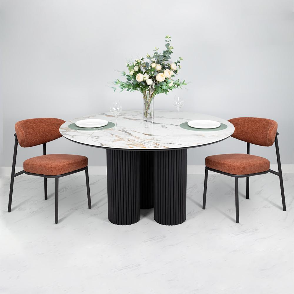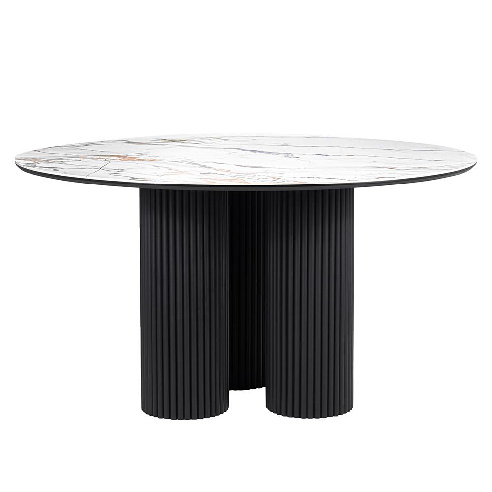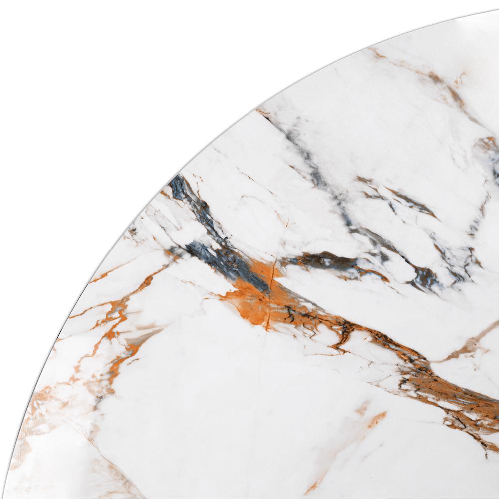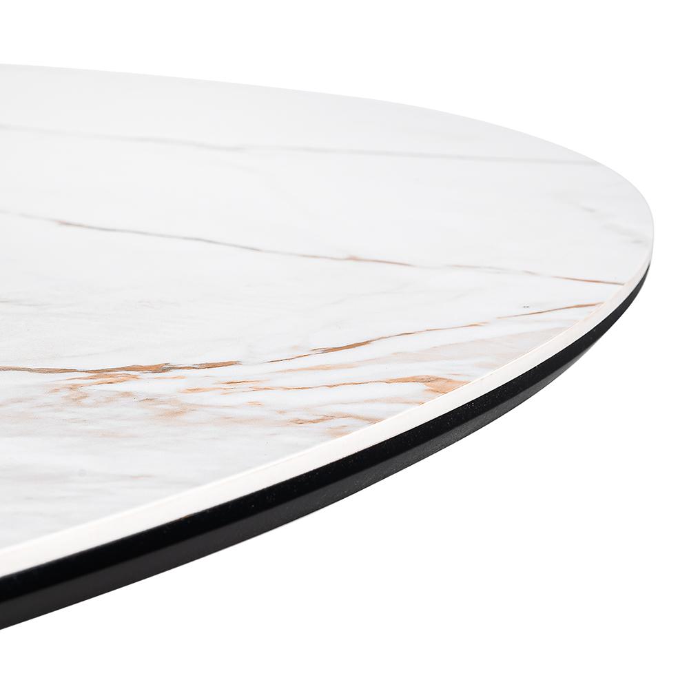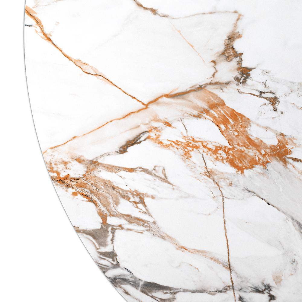 Стильный нераздвижной стол Aura – идеальное сочетание элегантности и функциональности. Стол Aura обладает глянцевой премиальной круглой столешницей из керамики, имитирующей белый мрамор, диаметром 110 см.