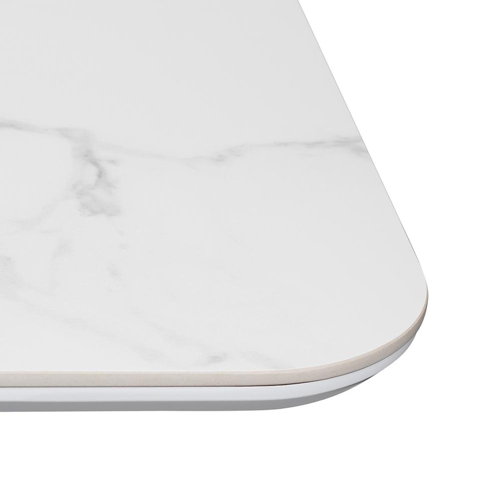 Высококачественная керамическая столешница: стол Festa обладает матовой премиальной столешницей из керамогранита White Stone, имитирующей белый мрамор. Поверхность размером 1600х900 мм со скошенной кромкой не царапается, не впитывает жидкость и легко моется, что обеспечивает долгий срок службы и минимальный уход.