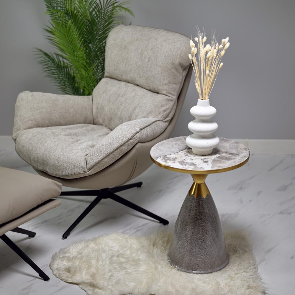 Стол Bradexhome Кофейный столик Secret диам.40см x 54см, серый мрамор, металл, керамика арт. FR 1037
