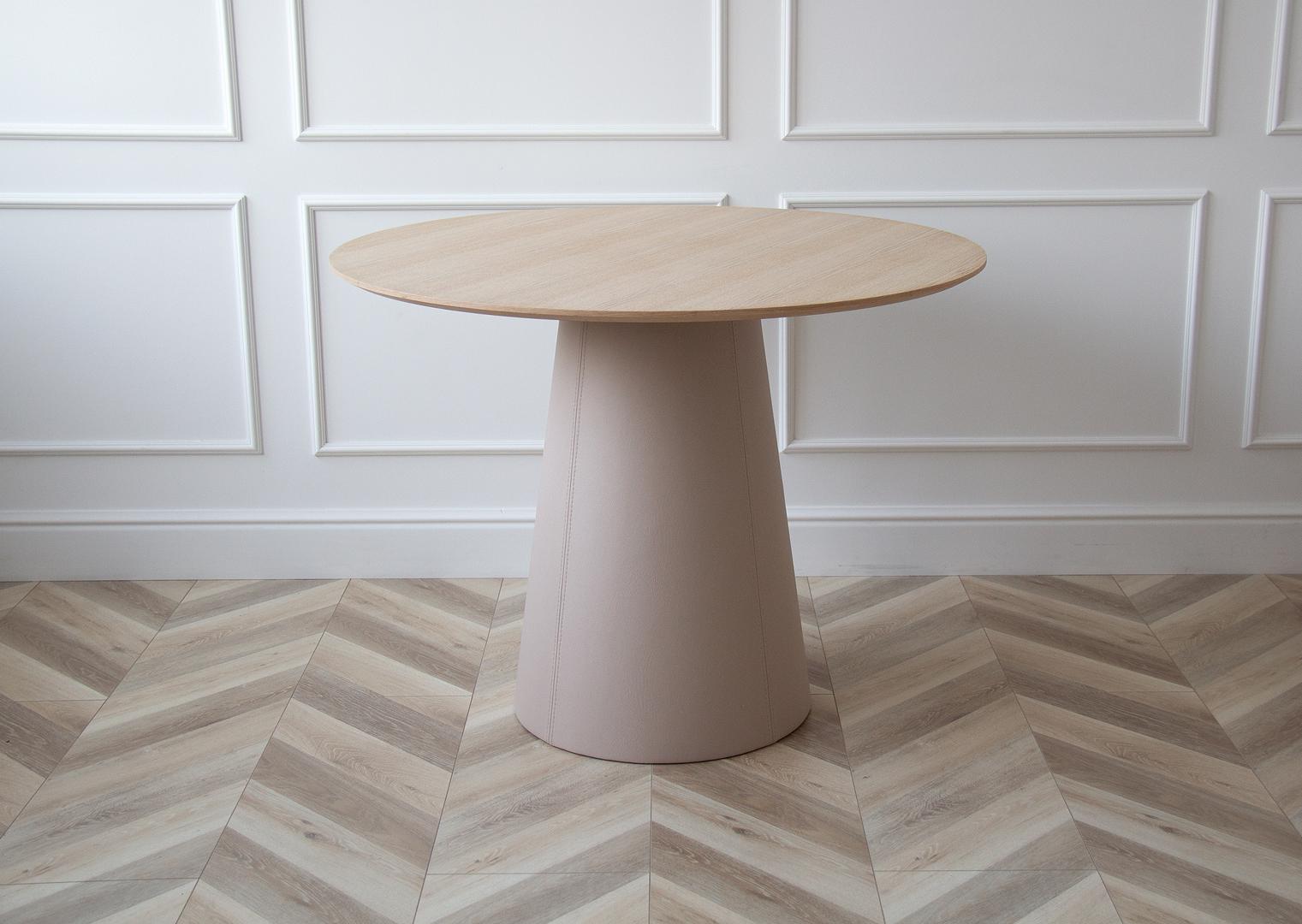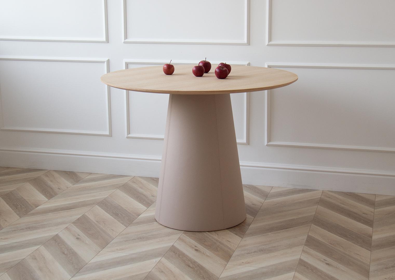 Стол Ellipsefurniture Стол обеденный Lagom D 100 см (натуральный дуб / бежевый, кожа) арт. TB01041503830