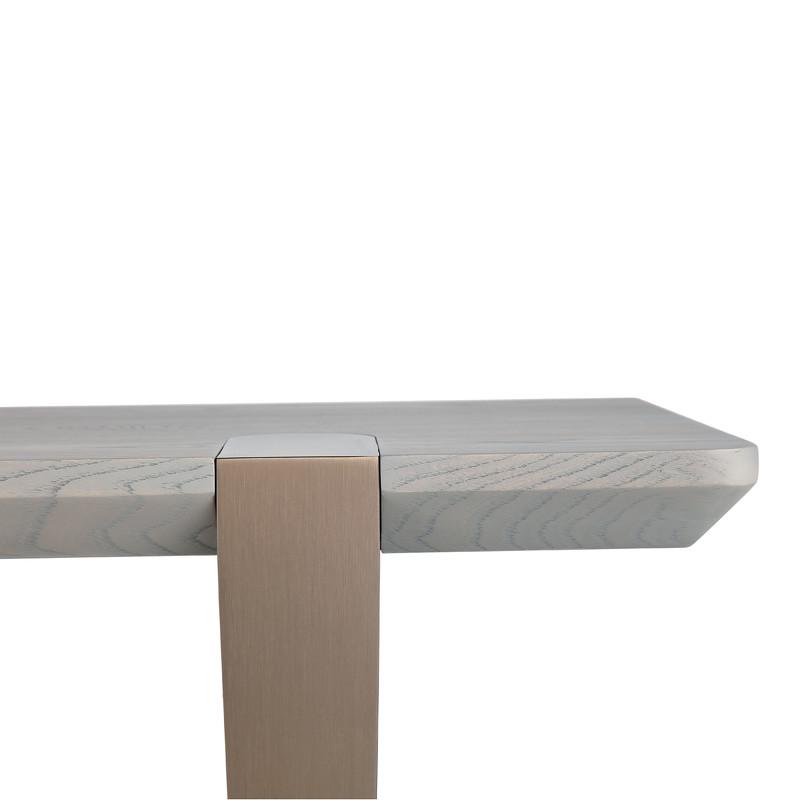 Лаконичный обеденный стол Noli от бренда Fratelli Barri. Акцентом стола являются "врезанные" в столешницу металлические ноги. Это придает казалось бы простому столу очень интересные детали, привлекающие внимание. Столешница изготовлена из высококачественного МДФ, ножки - МДФ с элементами из матовой нержавеющей стали. Отделка - натуральный шпон высокосортного кронированного вяза. Стол фиксированный, не раскладной. Стол для комфортного размещения 8-12 человек.