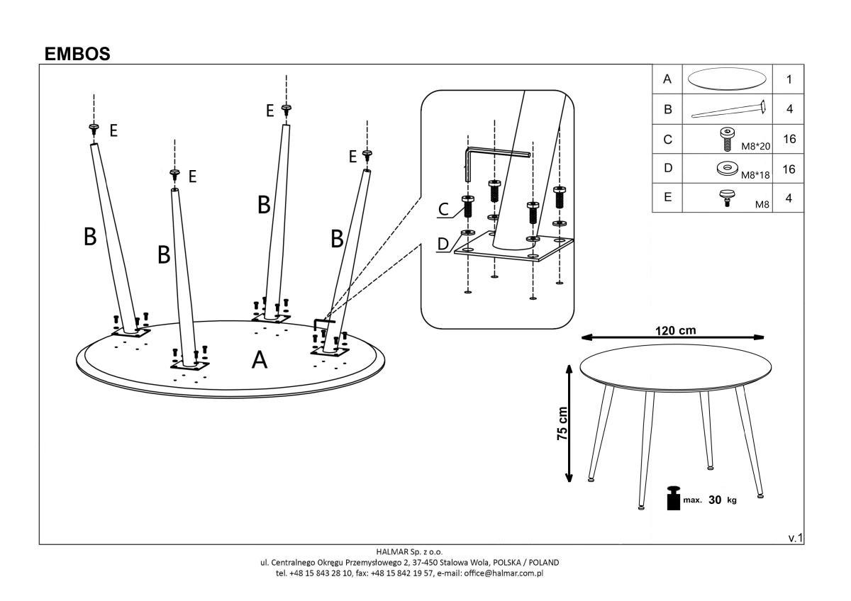 Стол Halmar Стол обеденный Halmar EMBOS (черный/черный, золотой) арт. V-CH-EMBOS-ST