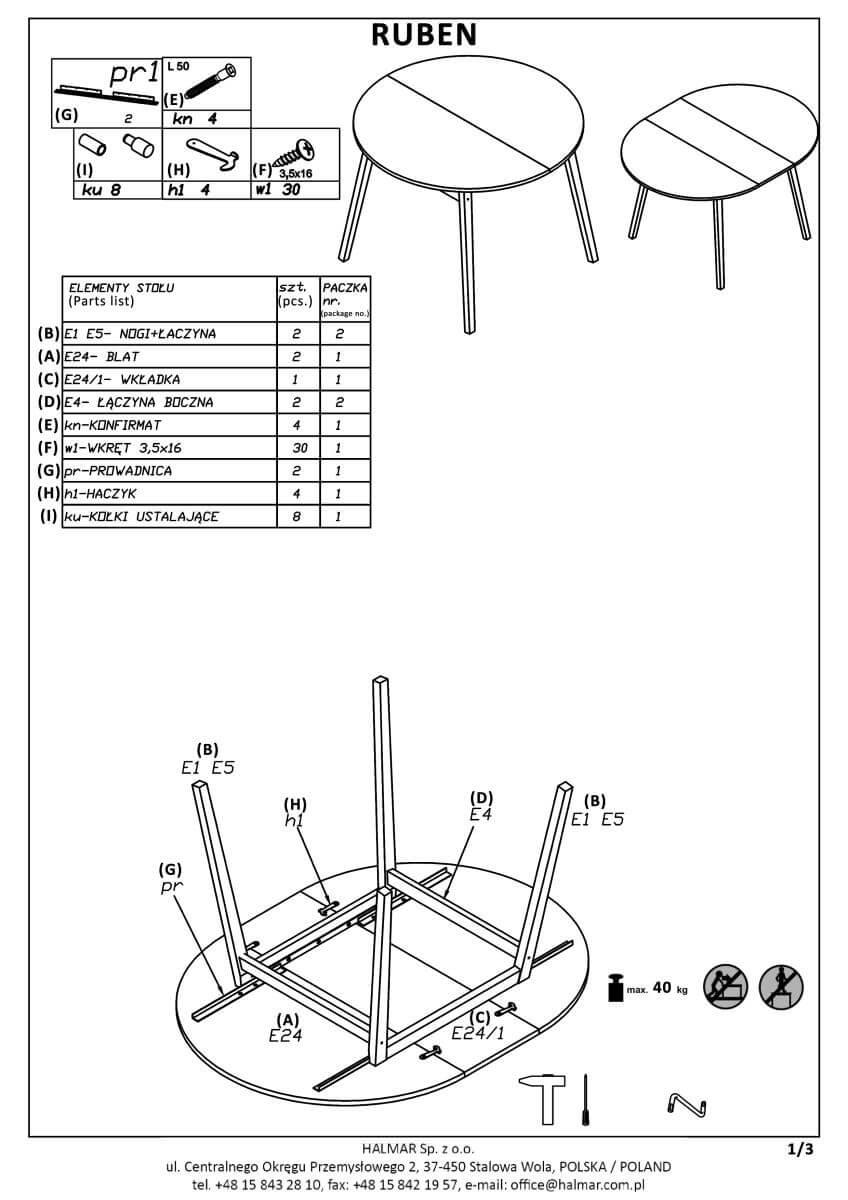 Стол Halmar Стол обеденный Halmar RUBEN раскладной (белый матовый/натуральный) арт. V-PL-RUBEN-ST-BIALY